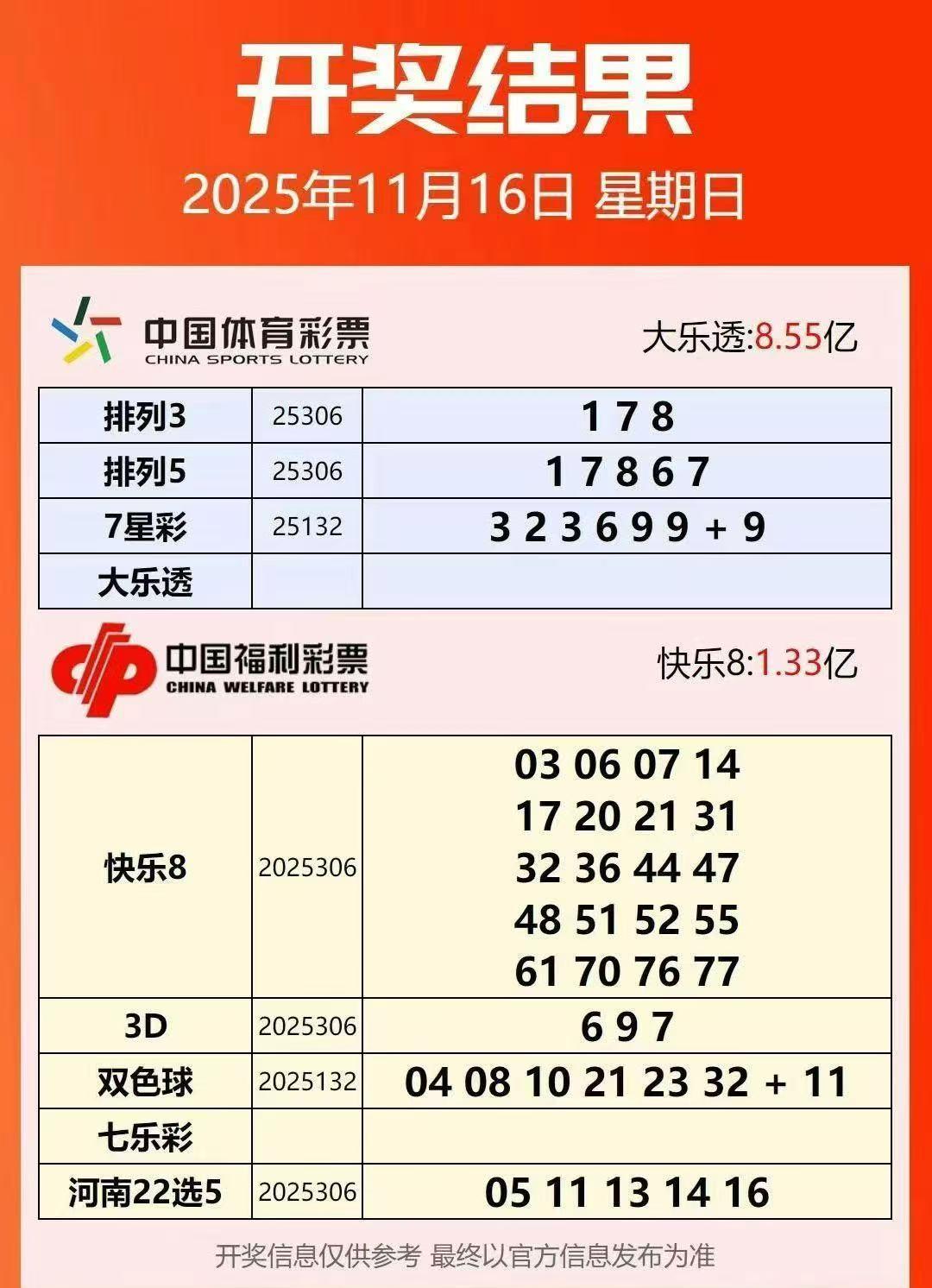 11月16号星期日,双色球开奖号码出炉:04、08、10、21、23、32—11