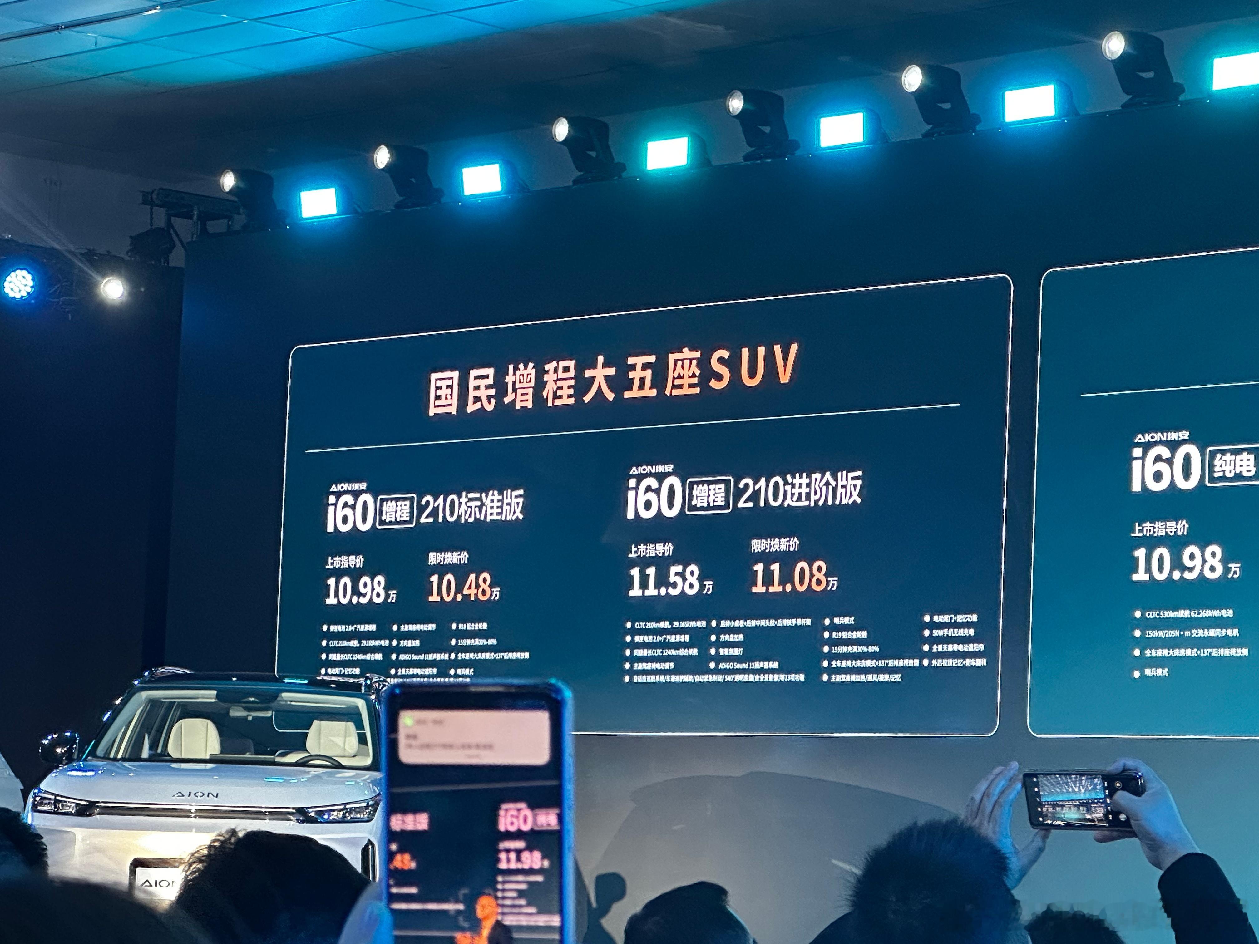 今晚,埃安i60正式上市,增程版售价10.48-11.08万元,纯电版售价10.