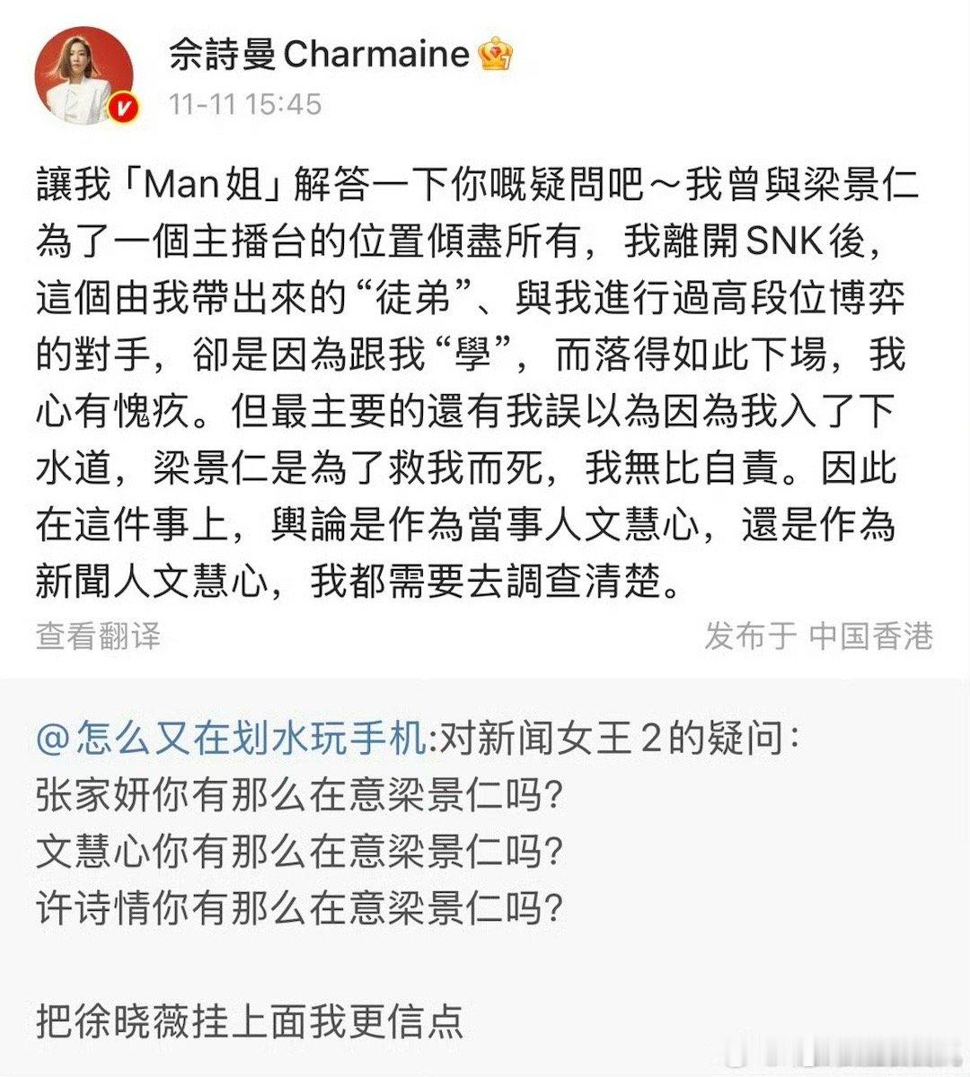 看了佘诗曼的小长文才知道为什么她的角色能这么成功,她对角色的理解和真诚是成功的基础,新闻女王就是这么权威