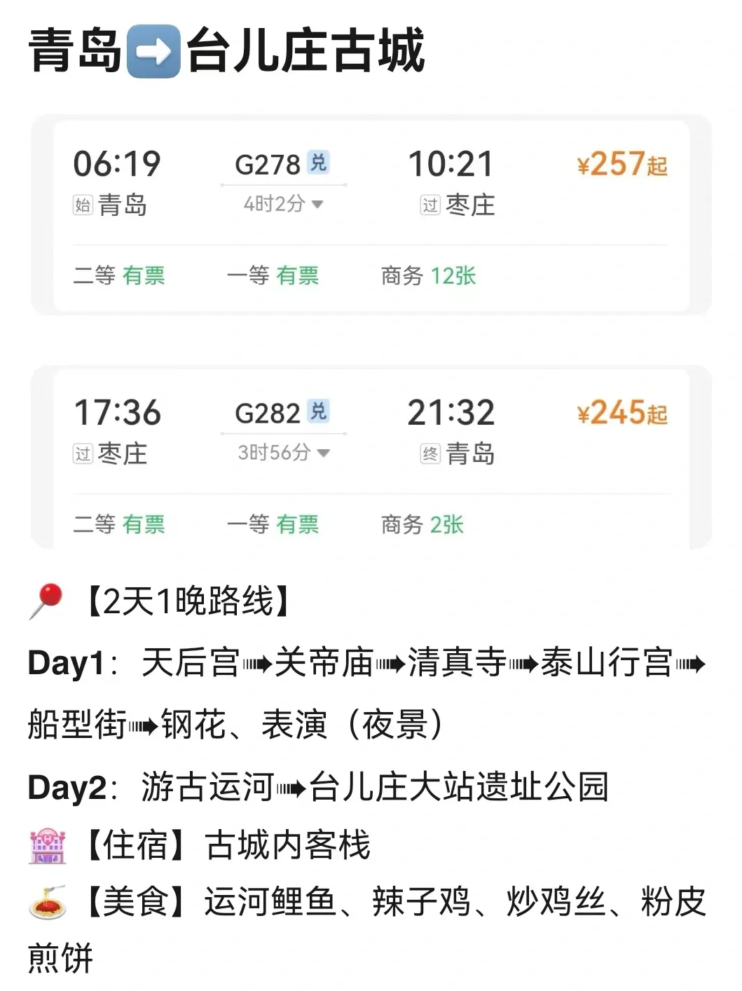 9️⃣青岛🚅枣庄(台儿庄古城)