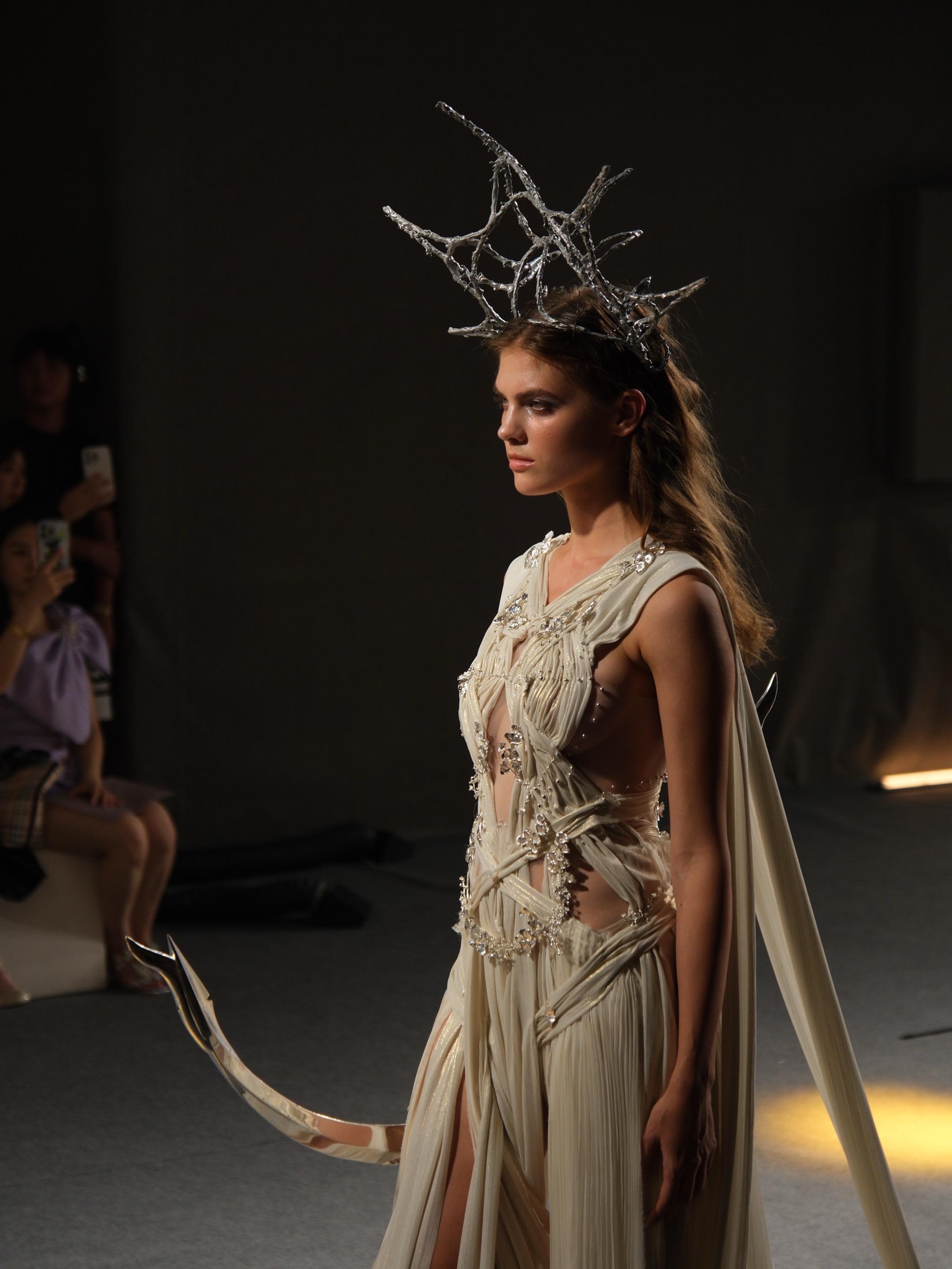 我宝宝的第一次个人秀 Camey Liu.作为买手 真的不难看出她从灵感到工艺上实现的功夫有多厉害✨ 图7的仿生科技感是这次她给我的惊喜❤️ 这不仅仅是一个仙女牌子 这次秀更是让我觉得 这是一个未来可以延伸往高定礼服尝试的牌子 三段音乐的切换 能看出主题从纯真的仙境到剑拔弩张的女神之争 很喜欢这个切换 上海时装周