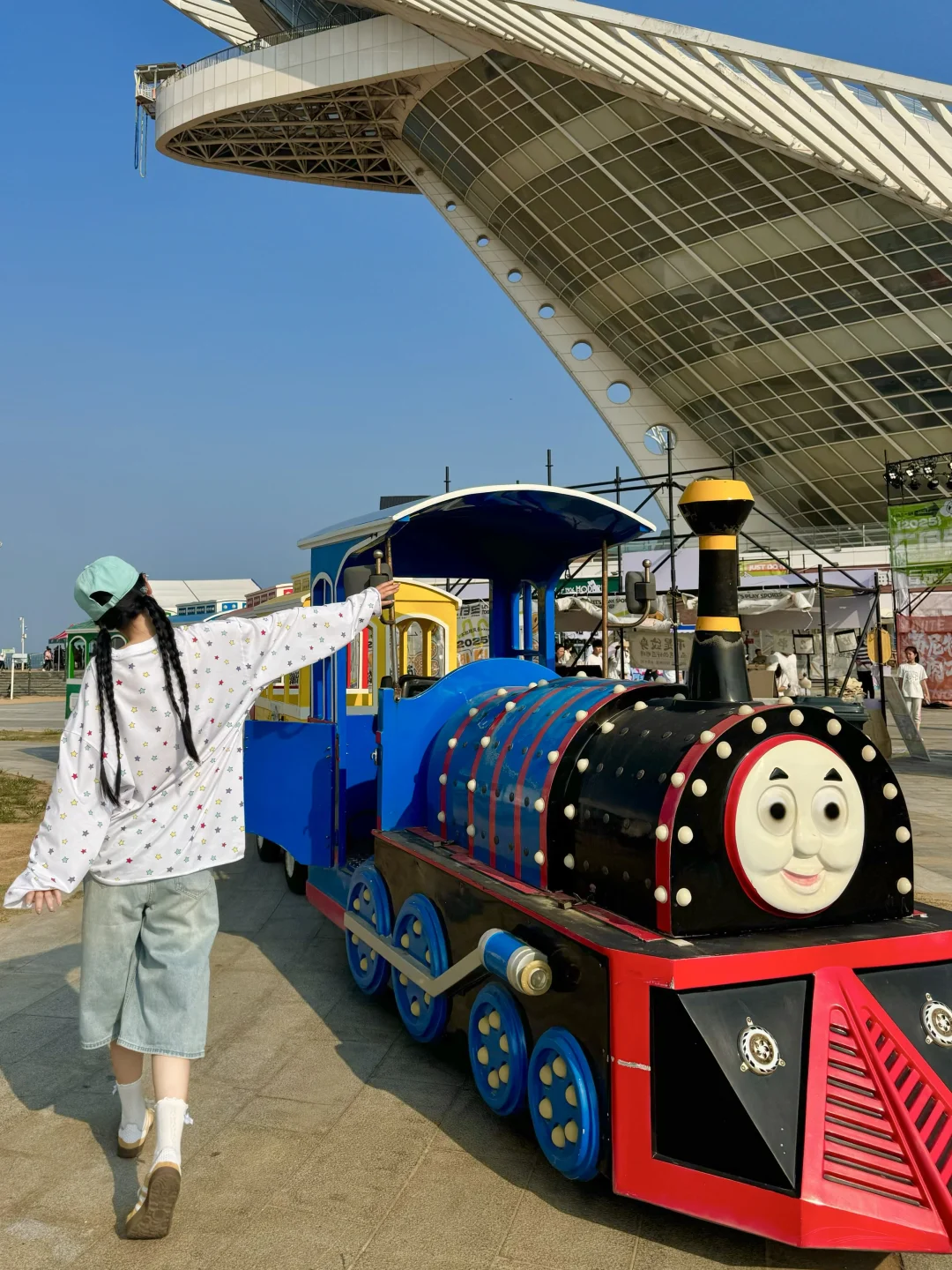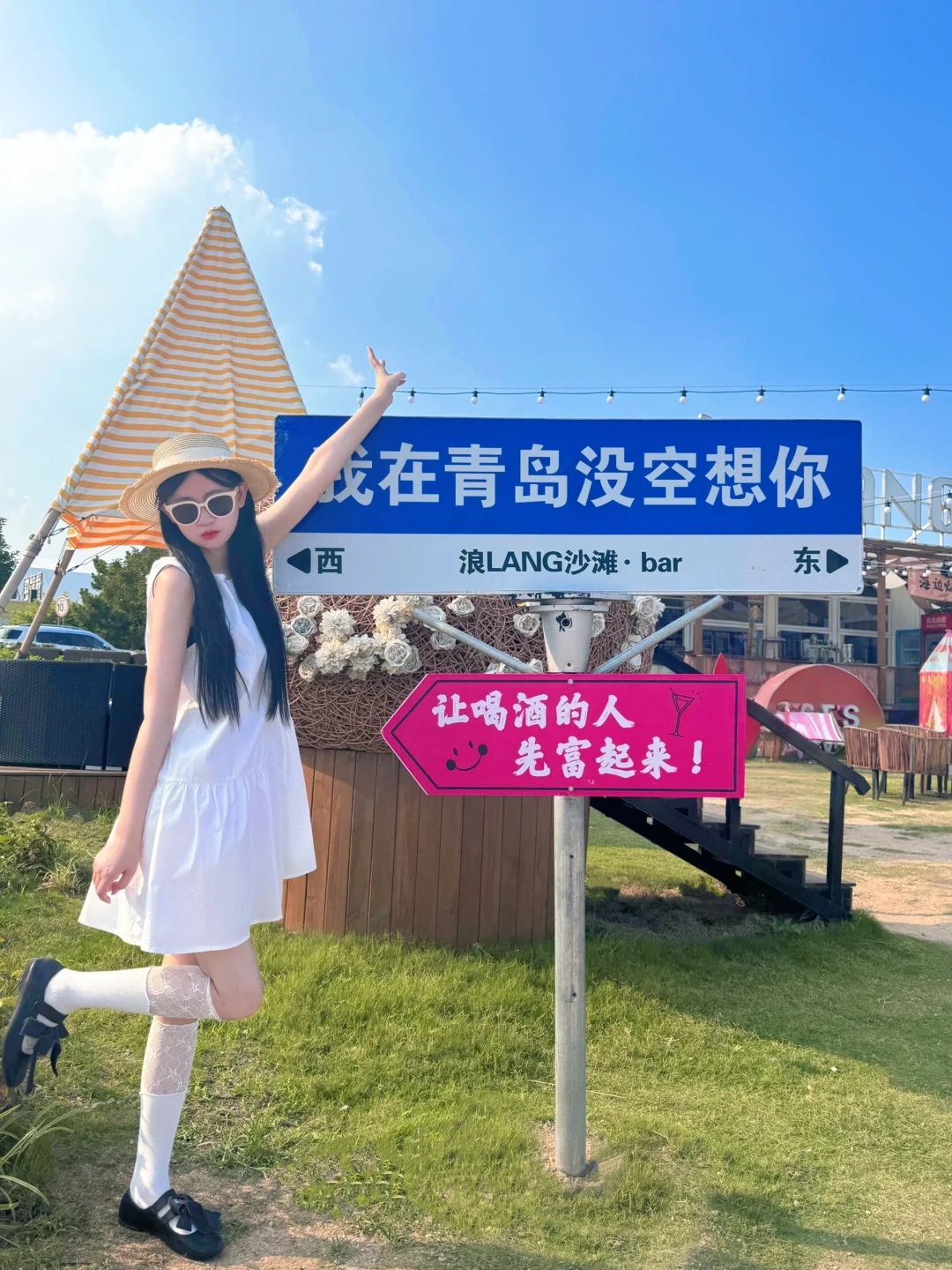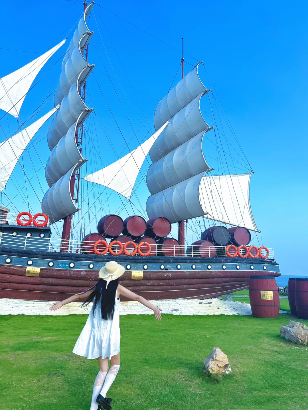 7️⃣啤酒城:正门“青岛世界”干杯雕塑🍻 西二门前草坪帆船 沿海的秋千 椰子树 都出片