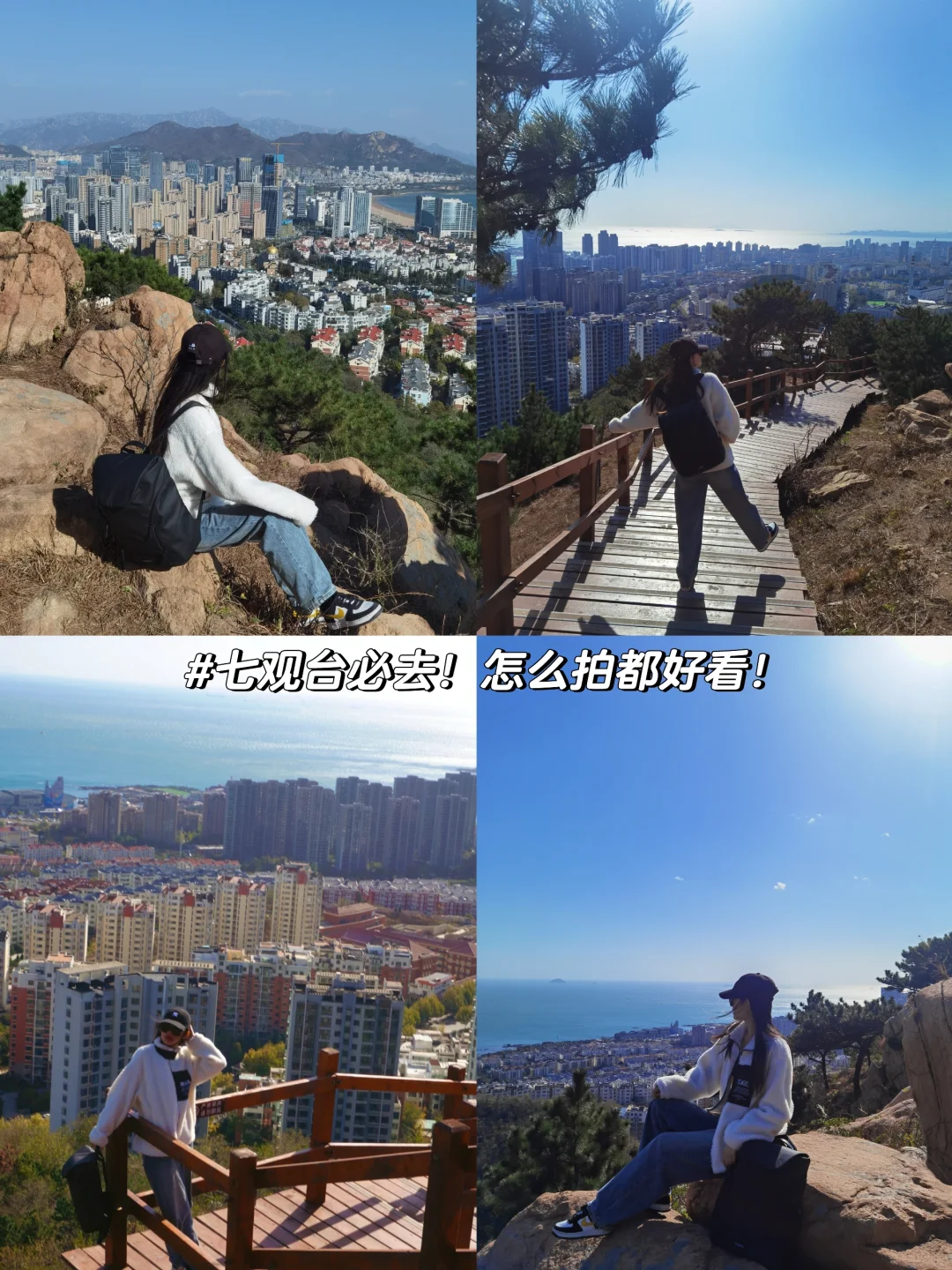 4⃣七观台:一定要去❗️观景台真的360度无敌海景,太美了!还可坐在大石头上拍照!但一定注意安全~晚上灯亮起,一整个爱乐之城既视感📷