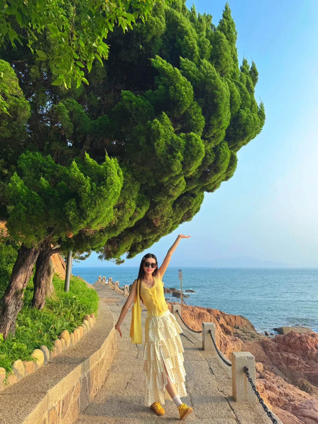 2⃣雕塑园:透过龙柏看大海 拍爱心石子路