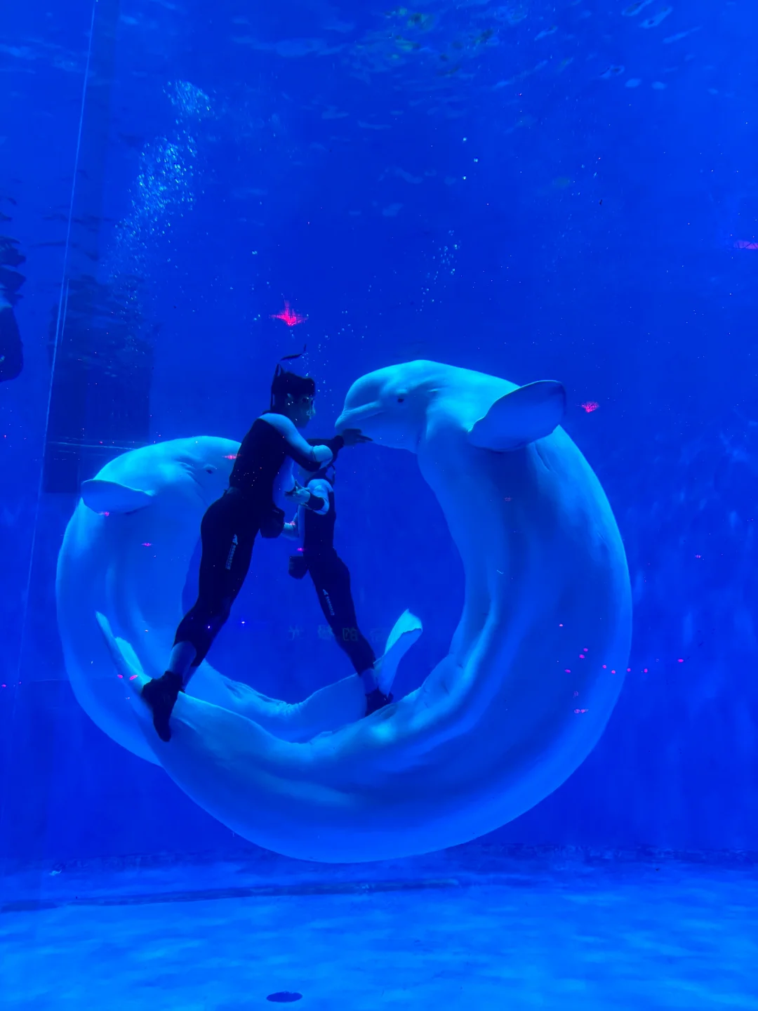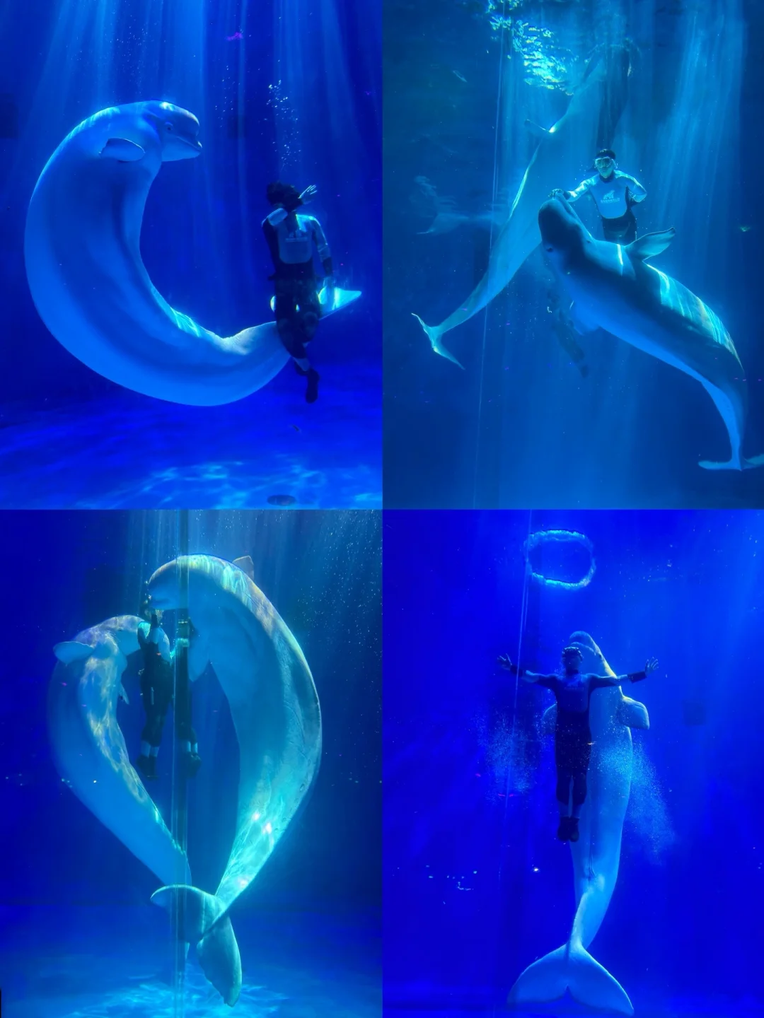 ✅极地馆1F白鲸展区,早点占C位看《白鲸之恋》,白鲸公主携手游泳王子水下华尔兹,比❤️等高难度动作,美哭了!