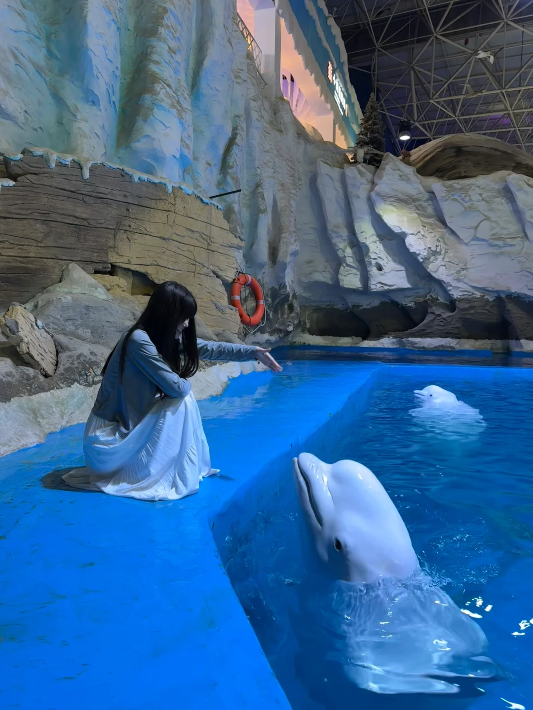 ✅极地馆2F企鹅馆旁,与白鲸互动,超治愈