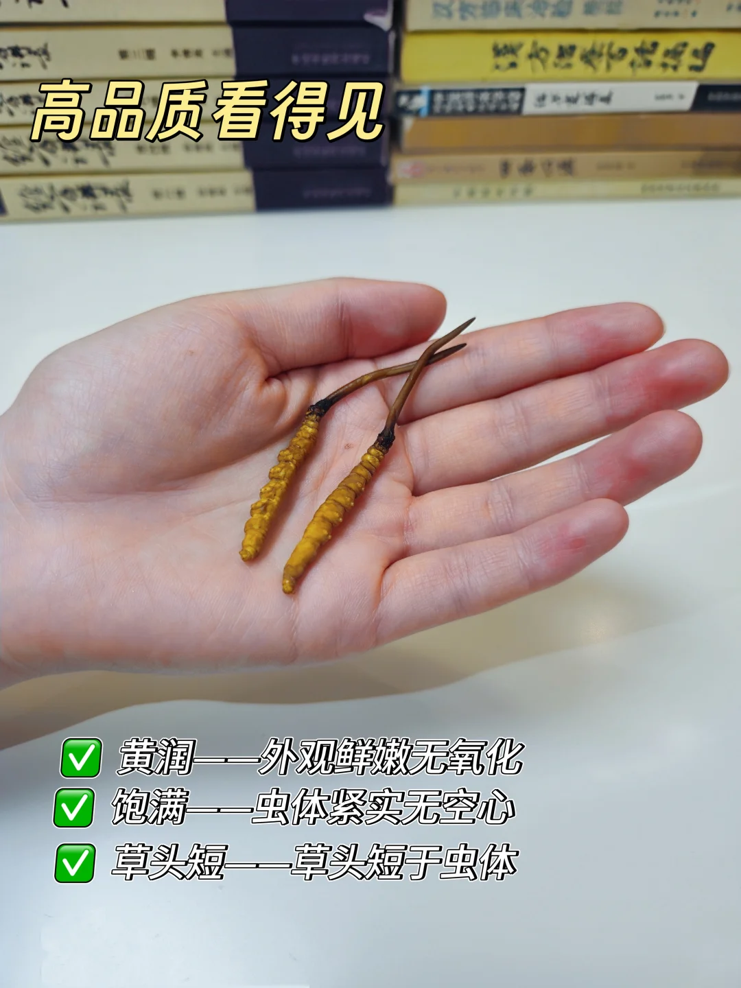 ②头茬鲜虫草正值黄金期,黄润、饱满、草头短,品相上成。