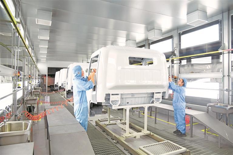 11月13日,在贵安新区贵州长江汽车有限公司涂装车间,工人正为新能源车体进行局部手工上漆。贵州长江汽车有限公司是贵安新区本土新能源车企,所生产的电动重卡等“贵州”牌新能源商用车获市场青睐。今年前三季度,已生产整车9382辆,完成工业产值9.43亿元,同比增长167%,呈现出良好发展势头。
