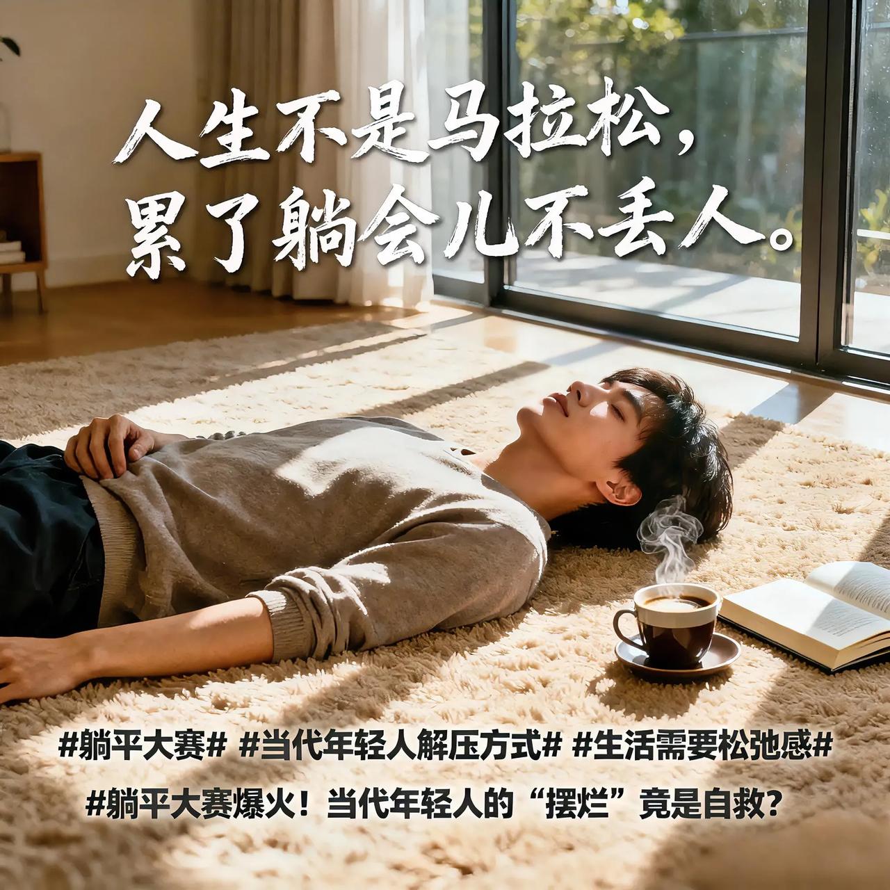 躺平大赛爆火!当代年轻人的“摆烂”竟是自救? “人生不是马拉松,累了躺会儿不丢人。” 近期多地举办躺平大赛,选手啥也不干躺着就能赢奖品,话题年轻人躺平大赛有多卷冲上热搜。 身边朋友上周刚参赛,说躺那儿的十分钟比加班一周还放松。国家统计局数据显示,2023年青年周均工作时长47.9小时,高压下的“躺平”早不是摆烂。 罗素说“须知参差多态,乃是幸福本源”。没必要逼自己时刻紧绷,偶尔躺平是为了更好出发。 你愿意放下手机参加躺平大赛吗?包头躺平大赛 假装摆烂大赛摆烂养生大赛当代年轻人解压方式 从化躺平大赛 青年躺平计划 躺平式马拉松 躺平大赛滕州躺平大赛 宅家摆烂大赛 太原躺平大赛 假装摆烂大赛 生活需要松弛感 青年人躺平 当代躺平 景区躺平大赛 躺赢挑战赛 躺平自救 躺平自救手册 躺平大赛 当代年轻人解压方式 生活需要松弛感摆烂式自救 五一躺平大赛 武汉躺平大赛 公园摆烂大赛 中卫躺平大赛