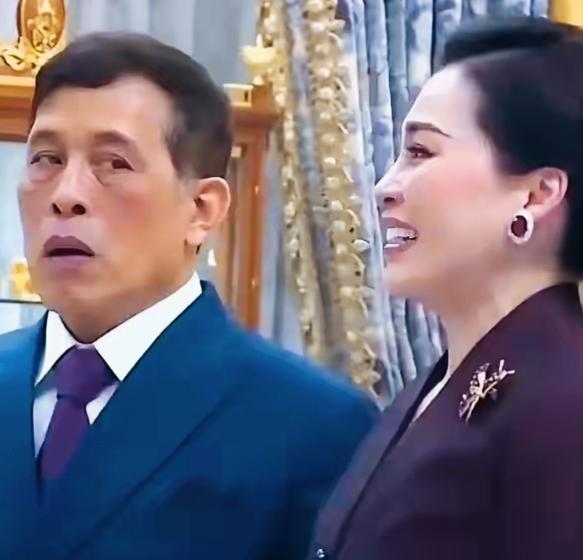 泰国国王看向王后的眼神是什么意思呢? 泰国国王这斜视的眼神很特别啊! 这眼神是被王后的美深深吸引了吗? 还是眼神中包含其他含义呢? 王后保持一脸微笑,很淡定啊!