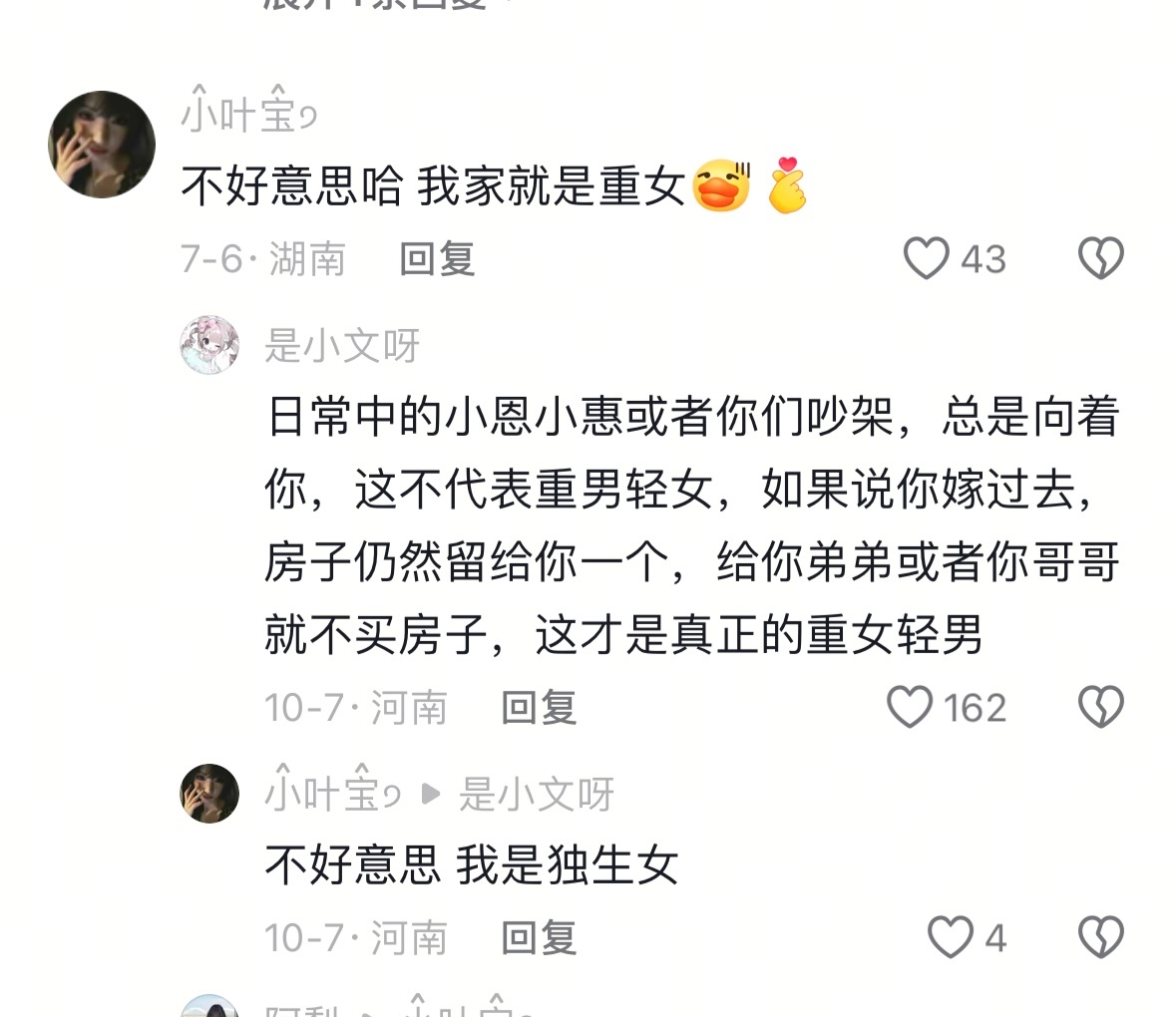 好弱智……好可怜的思维现在不是吹没有重男轻女了,开始吹重女轻男也有人捧上了~怎么个重女法~独生女……