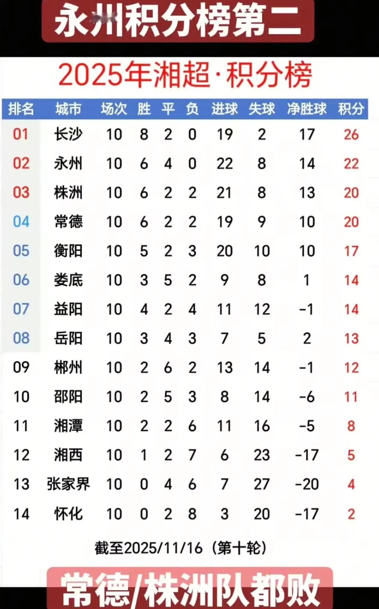 湘超第十轮比赛,常德队输给岳阳,株洲队输给娄底,受伤最大的其实是郴州。郴州直接被岳阳和娄底踢出前八。 谁能想到曾经叱咤风云,踢平长沙的郴州队,在打完那些强队之后,居然越踢越菜?上周差点输给倒数第一怀化,这周更是被永州4:0狂虐。 郴州队接下来还要对阵湘西、邵阳、衡阳,至少要拿下两场才能进前八,难度相当大。湘西实力强于怀化,如果郴州不能拿下湘西,后面两场不用考虑了,直接备战2026。湖南湘超联赛 湘超长沙队 湘超足球 永州湘超足球 湘超郴州队 湘超株洲队