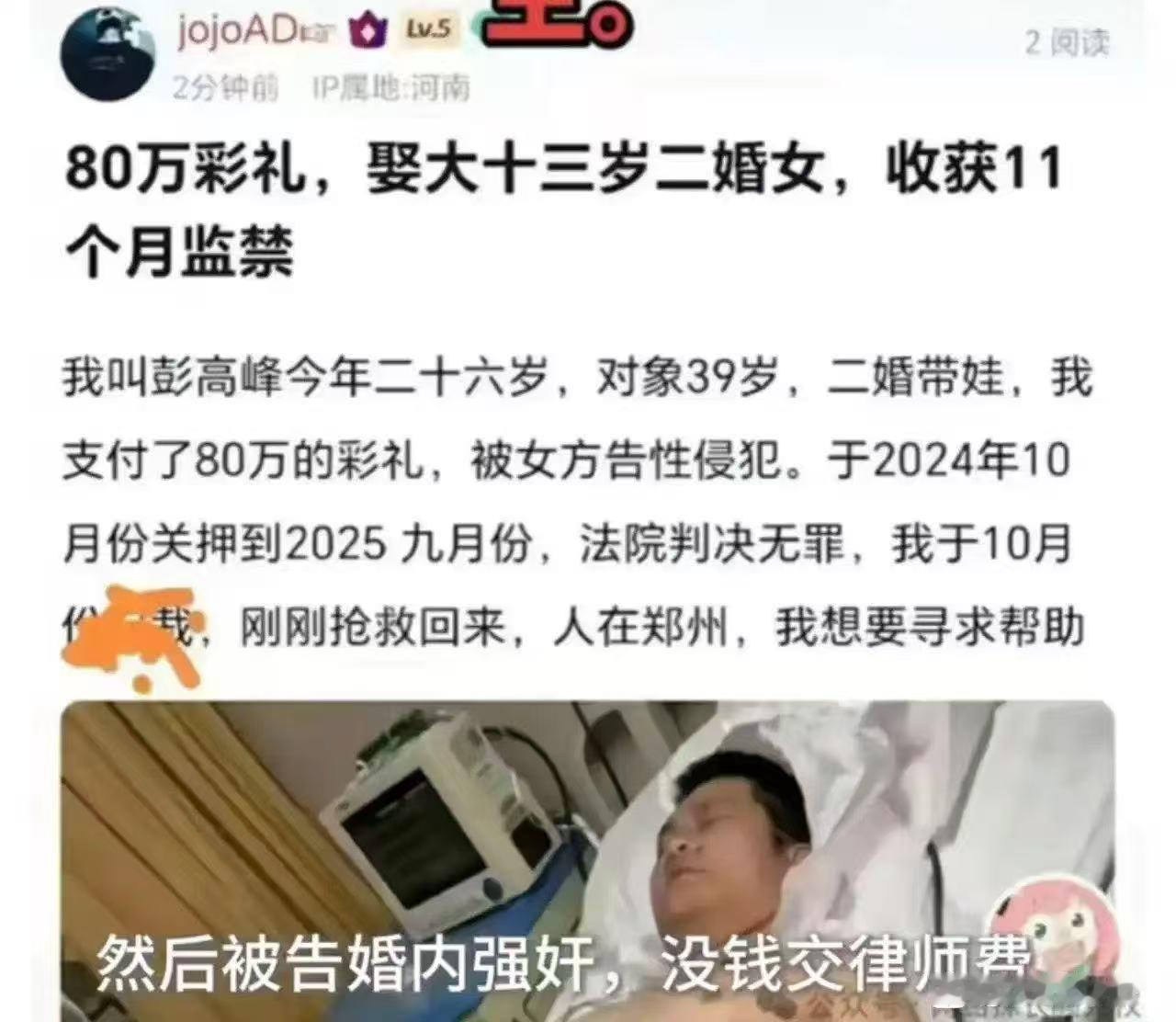 如何看待“80万彩礼娶离异大姐,被告强奸无钱请律师”? 男性对结婚是有什么执念吗
