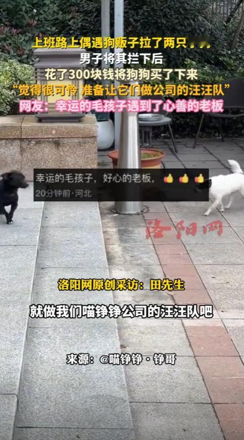 三百块救下两条命,连云港老板的暖心之举 江苏连云港,一位老板开车去上班,途中看到前方一辆电三轮的铁笼子里关着两条土狗。 11月13日清晨七点多,天刚蒙蒙亮,开五金厂的王海涛驾着黑色SUV,刚驶过高公岛的跨海大桥,就瞥见了路边的电三轮。 那辆三轮车身沾着泥点,后斗里的铁笼锈迹斑斑,两条土狗挤在里面,前爪都磨出了血印,尾巴紧紧夹着,喉咙里发出细碎的呜咽声。 王海涛心里一揪,他自己养的金毛叫“元宝”,每天早上都蹲在厂门口接他,看到这两条狗的眼神,他立马猜到它们要被送去哪儿——附近镇上有几家隐蔽的狗肉馆。 前方路口红灯亮起,他摇下车窗,朝着骑三轮的中年男人喊:“师傅,你这狗是要卖吗?” 男人回头瞥了他一眼,嗓门洪亮:“是啊,天冷了正合适,肉紧实!老板要不要,便宜卖你!” 王海涛皱了皱眉,没在马路边多搭话,指了指自己的车:“你跟着我走,到前面我的厂里说,这儿不安全。” 他的五金厂就在三公里外的工业园区,车刚停稳,男人就搓着手凑上来:“两条狗三百块,我刚从乡下收的,没喂过乱七八糟的东西。” 王海涛没讨价还价,打开手机转账界面:“钱我马上转,你别碰它们,我自己来。” 男人收了钱,伸手就想去开笼门抓狗,两条土狗吓得往笼子最里面缩,浑身抖得更厉害了,眼睛里全是惊恐。 “别碰!”王海涛赶紧拦住,从车上拿了瓶矿泉水,倒在手心递到笼边,“我打开门,你们别害怕。” 铁笼门“咔嗒”一声打开,他往后退了两步,蹲在地上慢慢拍手,就像平时召唤“元宝”那样:“过来,没事的。” 两条狗警惕地探着鼻子闻了闻,盯着王海涛看了足足半分钟,才敢试探着把前爪迈出来,一步一挪地走出笼子。 刚到地面,它们还拘谨地低着头,直到王海涛摸了摸其中一条狗的头顶,那条黄狗突然轻轻蹭了蹭他的手心,尾巴也悄悄抬了抬。 没一会儿,它们就放开了胆子,在厂区的空地上跑了起来,你追我赶地咬着一根掉落的钢筋,尾巴摇得像拨浪鼓。 赶来上班的工人都围过来看,王海涛笑着说:“以后它们就是厂里的‘巡逻员’,白天帮着看仓库,晚上跟保安大哥作伴。” 他让人找了个旧棉垫铺在门卫室旁边,又去超市买了狗粮,两条狗狼吞虎咽吃着,时不时抬头看看他,眼神里全是依赖。 有工人拍了段狗狗撒欢的视频发到网上,网友们纷纷点赞:“三百块对老板来说不算啥,对狗来说就是一条命啊”“这才是真正的温柔,不指责不说教,直接用行动帮忙”。 连云港市小动物保护协会的志愿者看到视频后,特意联系王海涛,给他送了宠物疫苗和驱虫药:“像您这样的随手善举,比空喊口号有用多了。” 王海涛说自己没多想,就是见不得小动物受委屈:“它们啥都懂,你对它好,它就把你当亲人。” 你遇到这种情况会出手帮忙吗?你身边有没有这样温暖的小事? 信息综合自《洛阳网》2025年11月14日《连云港老板路遇待宰土狗,300元买下当“厂宠”》报道、连云港市小动物保护协会官方声明及当事人提供的现场照片。