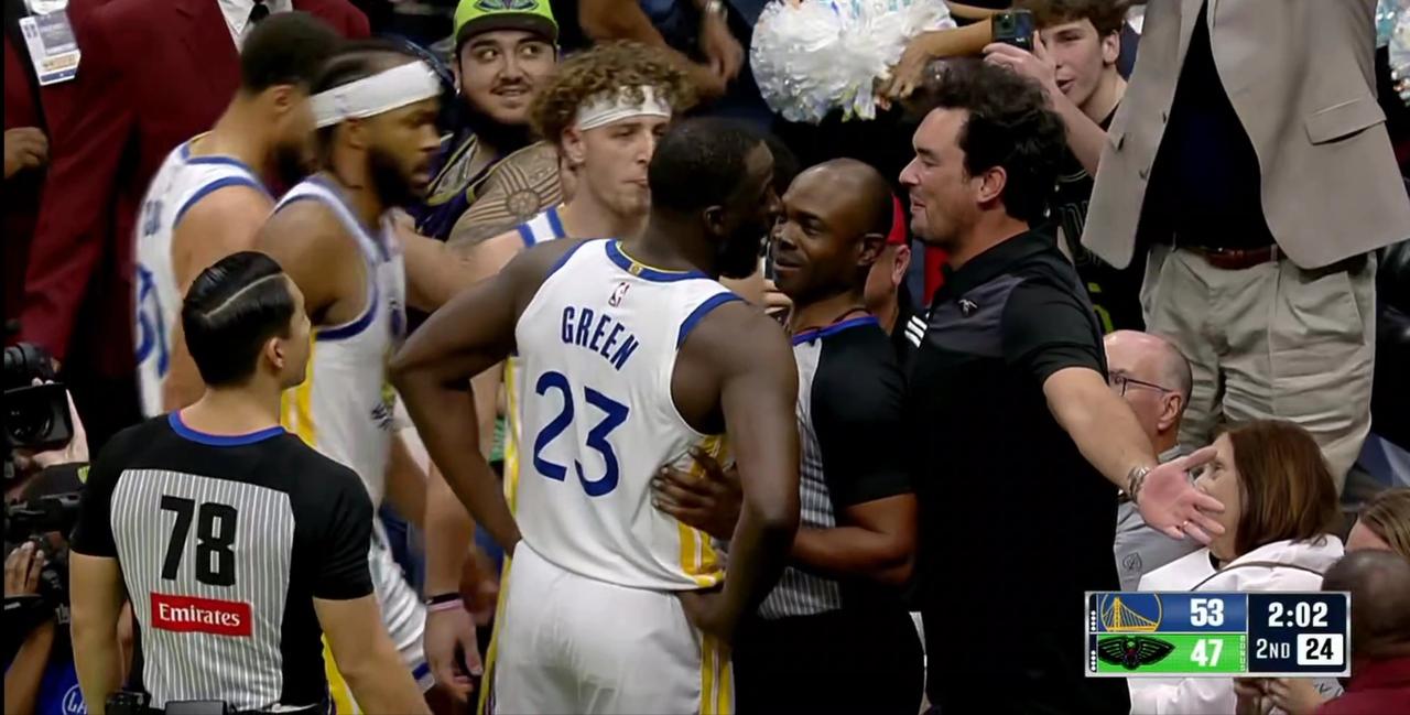 心态崩溃!追梦格林险些对现场球迷动手! 勇士球员追梦格林是全联盟最会搞心态的球员之一,很多球员都因为他的言语影响了发挥,而追梦格林在对阵鹈鹕比赛中却罕见和现场球迷互骂,不知这名球迷对追梦格林说了些什么难听的话。 还好裁判和球员及时冲过来拦住追梦格林,大家都怕追梦格林一时失控对球迷大打出手,这在NBA是绝不允许发生的事,届时追梦格林必然会遭到重罚,还好追梦格林听劝走开了!