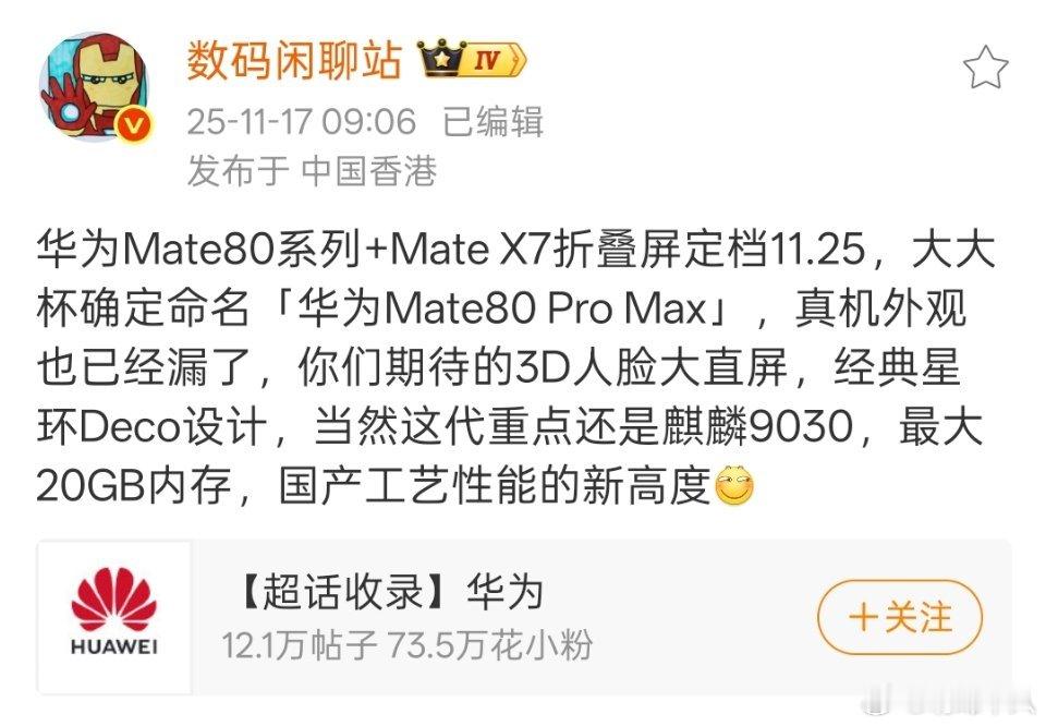 真叫华为Mate80 Pro Max了。