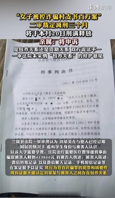 村支书掏钱买感情,女孩收钱不认账,法院只认证据不认情 这件事说起来复杂,其实很简单,一个村支书给一位年轻姑娘转过去143万元,后来他认为自己被骗了,就把对方告上法庭,法院判决被告四年半刑期,但只认定其中41万多元属于诈骗,剩下那一百多万元因为缺乏证据就没有算进去,这个判决结果一公布,全国上下都议论纷纷,大家关注的并不是金额有多大,而是“证据不足”这几个字让人感到意外。 刘某美当时只有十九岁,年纪很轻,过去经历也比较复杂,她之前有过吸毒行为,也从事过。
