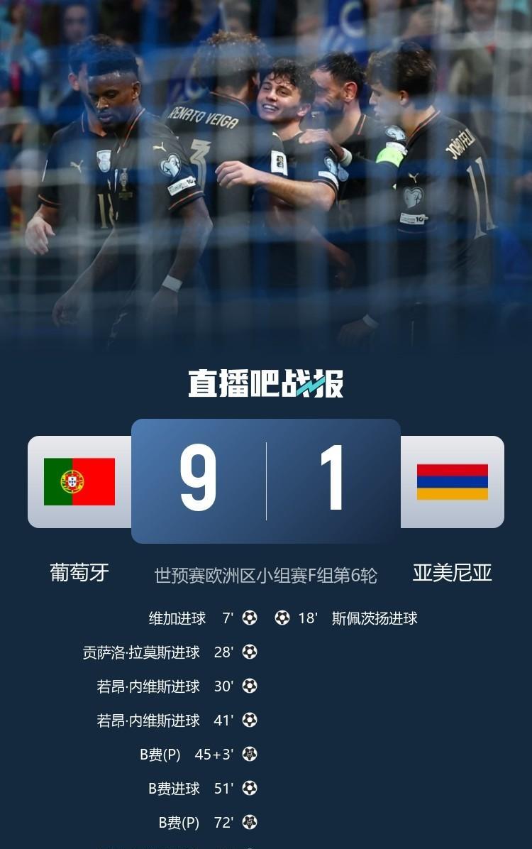 好消息:C罗第6次晋级世界杯决赛圈,成为历史第一人;坏消息:因为红牌,C罗可能小组赛继续停赛。 恭喜巨星C罗,这次作壁上观,躺进世界杯决赛圈。有一说一,不用看带头大哥C罗的脸色,葡萄牙国家队更是勇猛,B费和内维斯帽子戏法,葡萄牙9:1大胜亚美尼亚,强势晋级世界杯决赛圈。 不知道大家看了直播没有,没有C罗在场上,葡萄牙国家队进攻更加犀利流畅,配合更加默契,而且是多点开花,根本防不住。反观C罗在场上,大家都只会找C罗,也不管他机会好不好,反而踢得变扭。 那么问题来了,如果C罗甘愿打替补,葡萄牙国家队有没有机会拿世界杯冠军?#C罗#