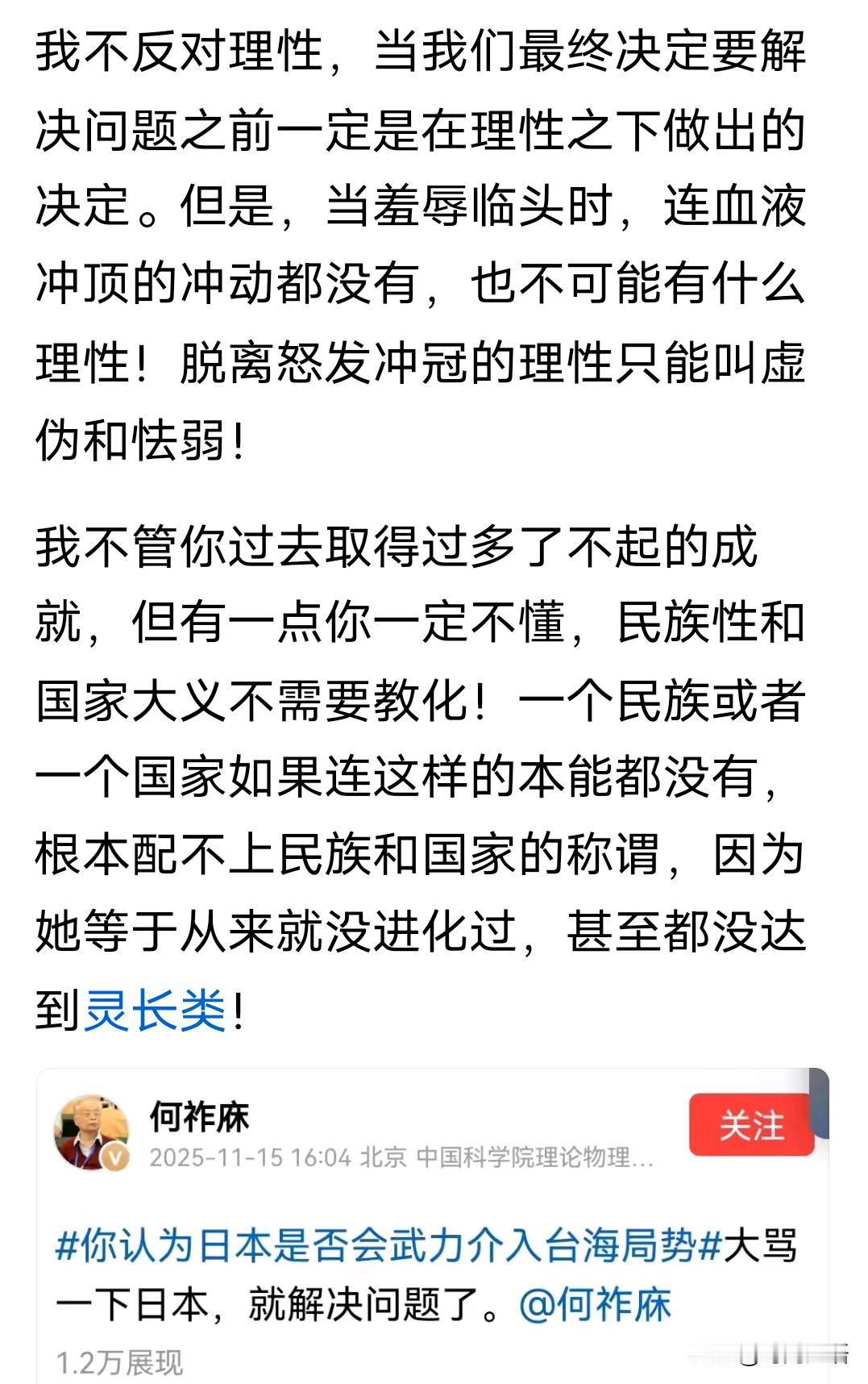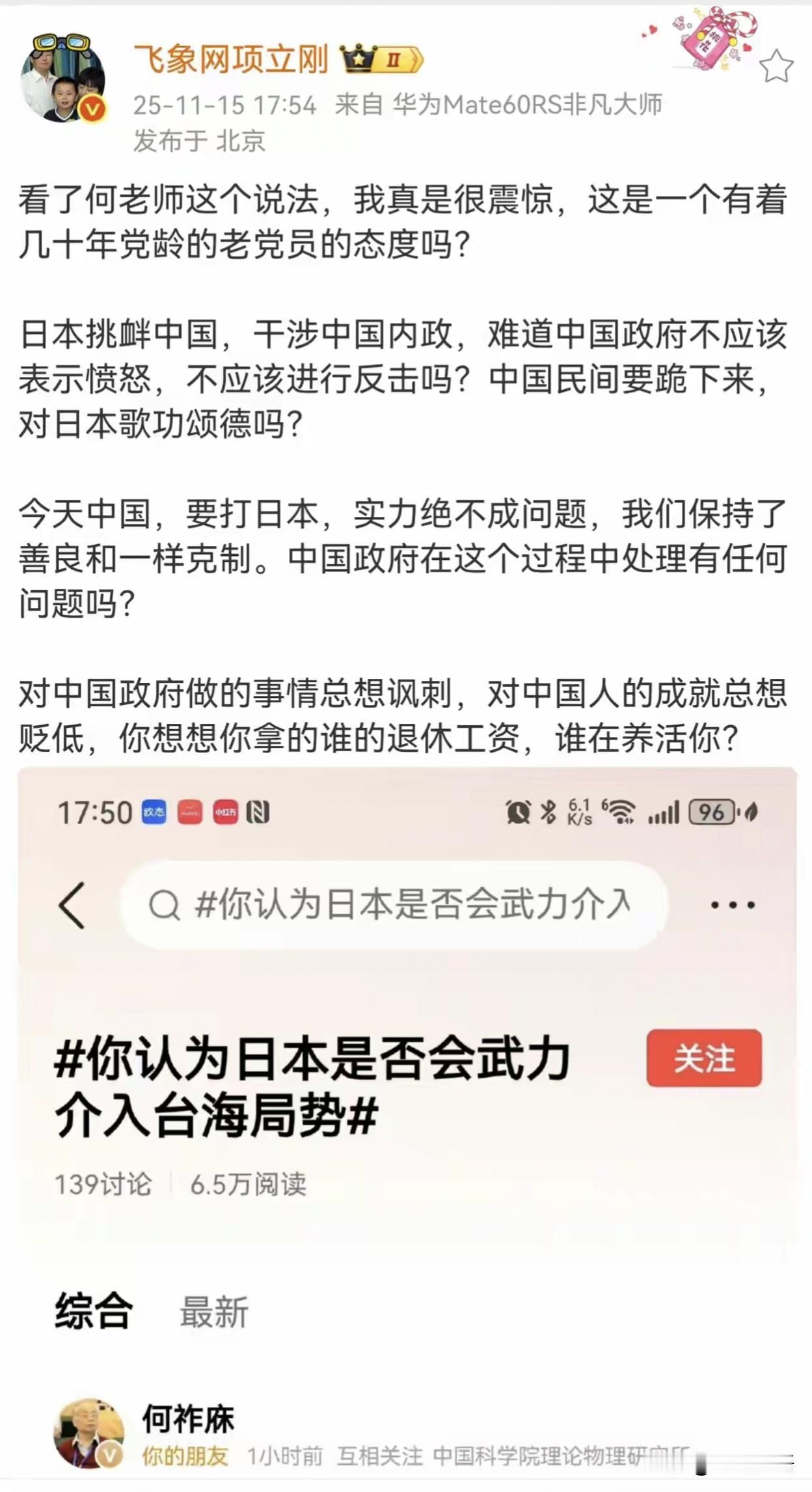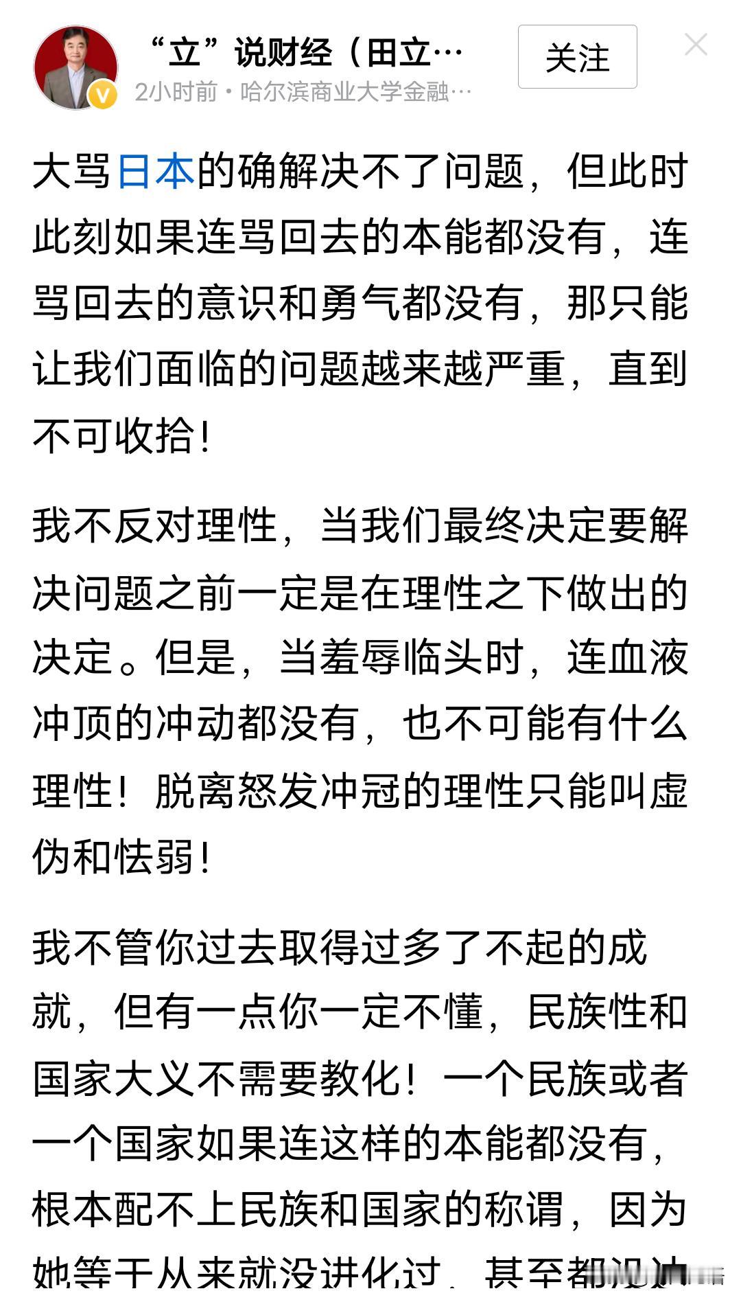 都一把年纪了就不要再出来胡说八道,你可以夸美国漂亮,说西方先进,但不要给高市早苗擦屁股。 最近的舆论场有个特点,但凡支持乌克兰、以色列的人都会遮遮掩掩的出来给高市早苗洗洗白。 它们嘴上说没立场,所作所为处处都是美西方的立场,就连王小东最近说了几句实话,也被一帮大侄子们攻击,比如刁眼和军帐书生。 当然,和何老比起来它们还算不上公知。 难怪项立刚很生气,也难怪田老师忍不住也要出来评几句了。 高市早苗是个妖,也是一个照妖镜,把那些大侄子们的丑恶嘴脸都照出了原型。 有些人吃着自家的饭,却总爱砸自家的碗,真是不做不休……