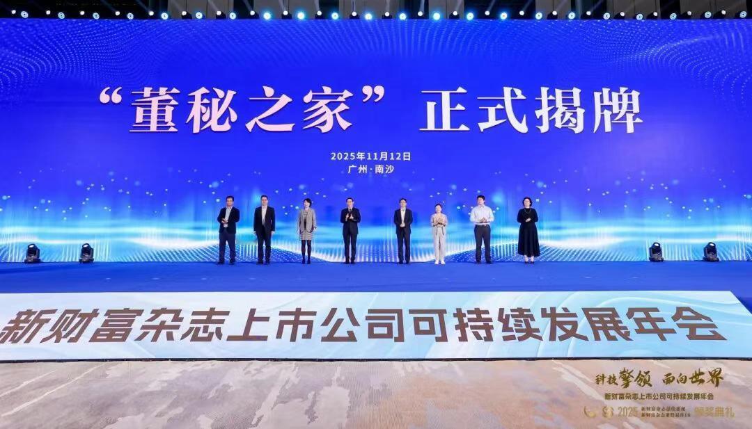 【新财富杂志“董秘之家”在南沙正式揭牌】由证券时报社指导,新财富杂志社主办的2025新财富杂志上市公司可持续发展年会暨最佳董秘、港股最佳IR颁奖典礼在南沙顺利举办。本次年会,汇聚了来自监管机构负责人、各产业顶级智囊、上市公司高管、投研机构负责人等超过400位资本圈精英。各方英才共聚南沙,见证了300余位“最佳董秘”、50支“最佳证代”团队及百余支“港股最佳IR”团队获奖的荣誉时刻。本届年会聚焦企业智能、数智化跃迁等热点议题。 年会上,“董秘之家”正式揭牌,旨在搭建一个常态化、高层次的交流平台,促进资本、产业与区域经济的深度融合,助力优秀上市公司在湾区沃土上活力绽放。