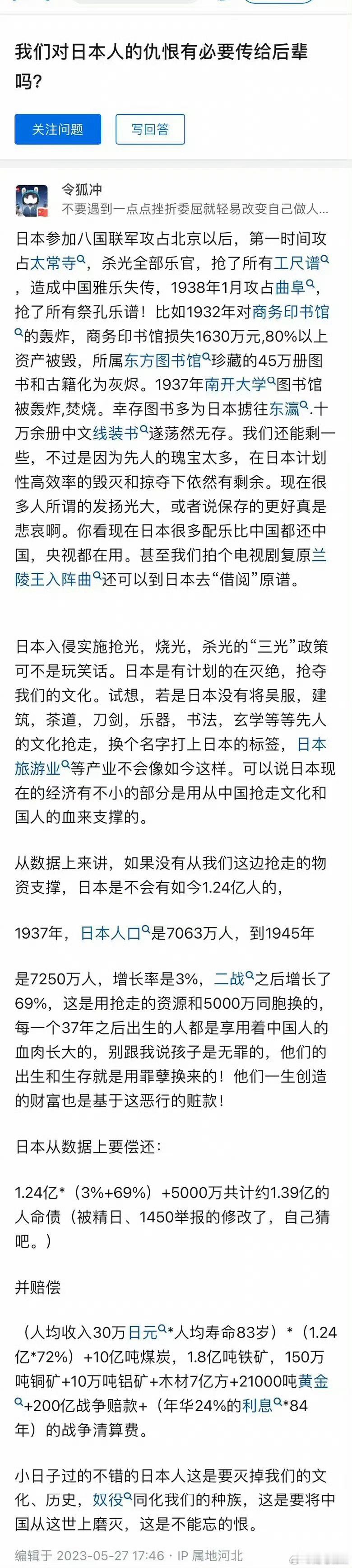 对日本人的仇恨应该传给下一代吗?这篇文章值得一读。