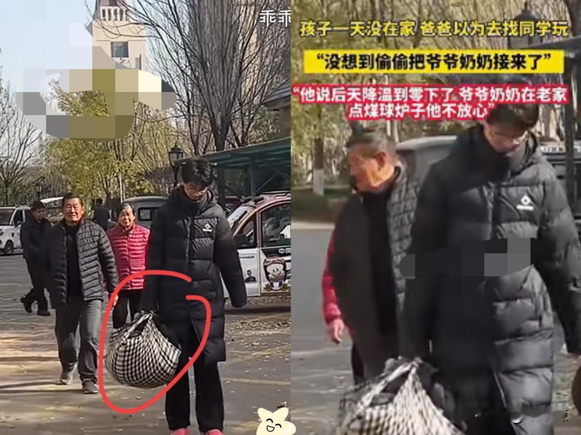 太暖心了!近日山东,爸爸发现儿子一整天都不在家,以为儿子是找同学玩了就没放心上,到了下午才知道,瞒着爸妈独自跑回老家,硬把爷爷奶奶接来城里过冬,这才是隔代亲最动人的模样! 小时候跟着爷爷奶奶在农村长大,他记着二老的疼爱,更惦记着乡下寒冬里靠煤球取暖的辛苦! 眼看城里早已暖意融融,老人还在挨冻,他二话不说动身接人,一句“你们不走我也不走”,把孝心藏进了可爱的执拗里! 曾经是爷爷奶奶牵着他的手探路,如今换他提着行李回头等候,这份角色互换里,满是纯粹的感恩与牵挂! 所谓家庭传承,从不是刻意说教,而是爸妈孝顺长辈的样子,悄悄刻进了孩子的骨子里! 比起光鲜的成绩和奖状,这份懂得心疼长辈、主动反哺的孝心,才是孩子一生最珍贵的底色!