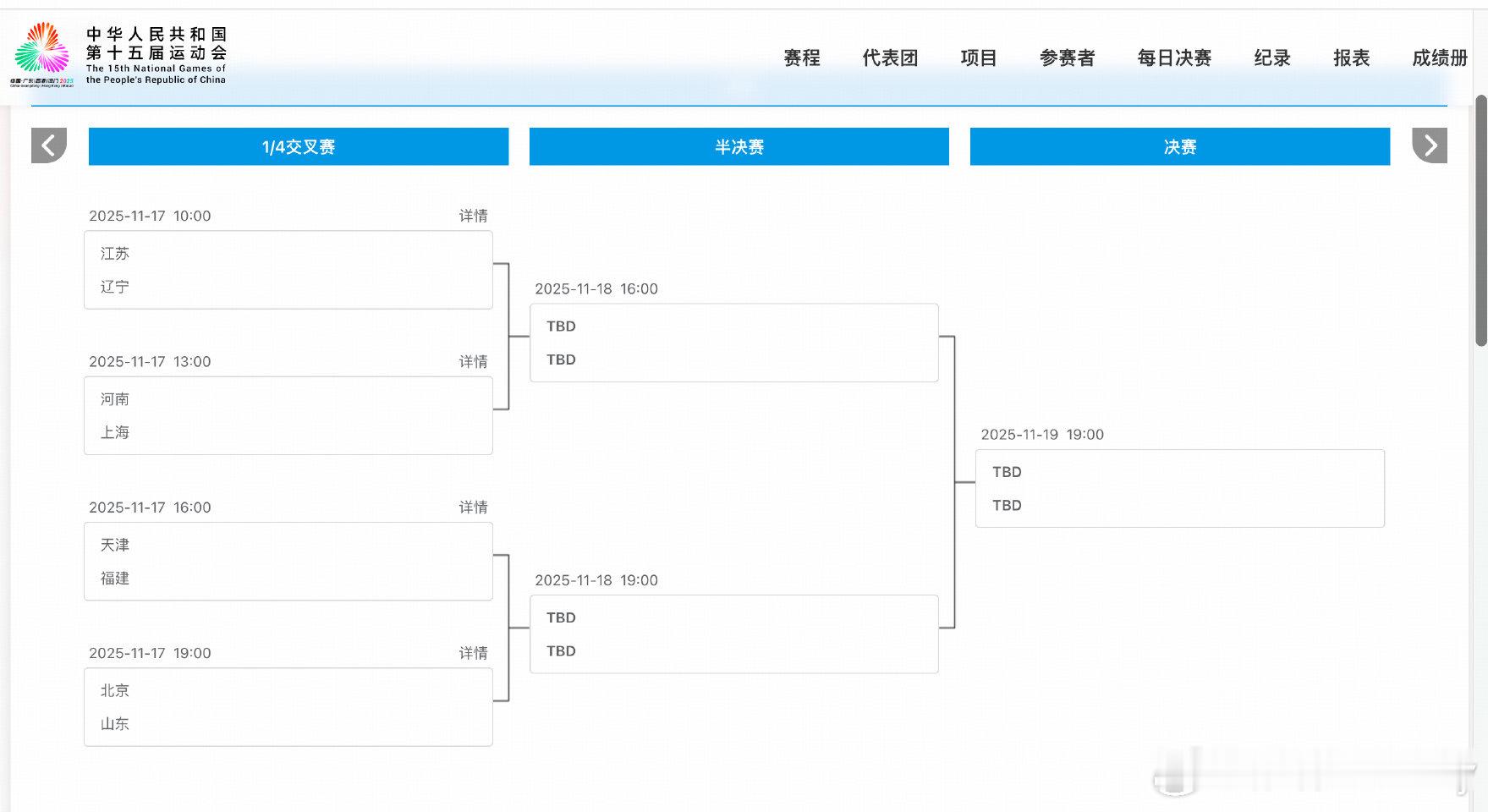 官网也是“水”,把江苏和河南又放在一个半区了(pic1)。按照中国女排官方发的赛程(pic2)肯定是不同的两个半区。1/4决赛上半区10:00 江苏 vs 辽宁16:00 天津 vs 福建下半区13:00 河南 vs 上海19:00 北京 vs 山东