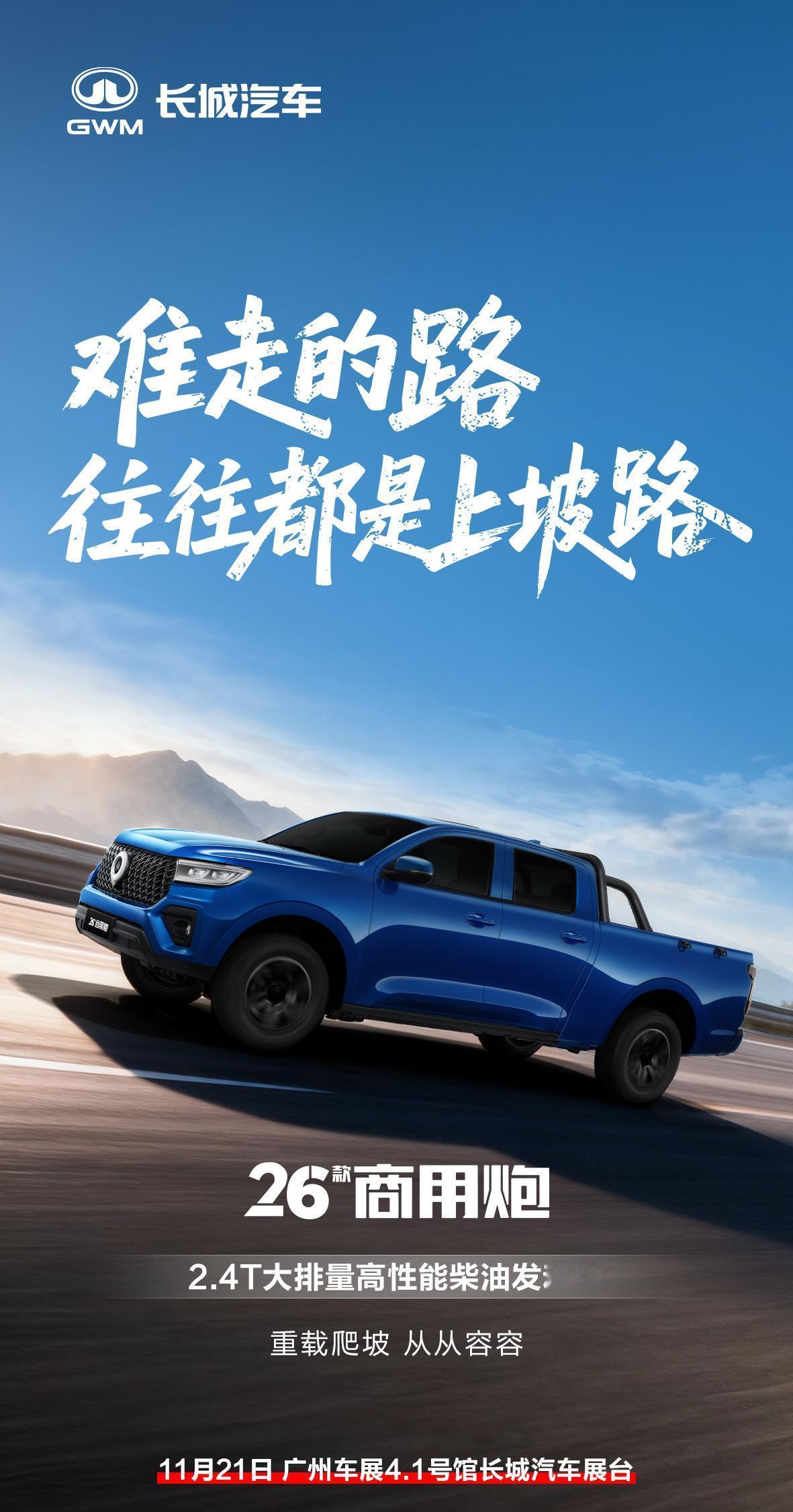 2026款乘用炮内饰曝光! 最大亮点:换装14.6英寸中控大屏,搭载Coffee OS3智能座舱,支持手机车机互联。 这屏幕尺寸,在皮卡里算大块头了吧?[吃瓜群众] 看来乘用炮是想把智能体验卷起来! 商用炮/越野炮也将在广州车展同步上市: - 商用炮:外观不变,2.4T柴油发动机,低扭强劲,重载爬坡轻松拿捏。实干家首选! - 越野炮:外观不变,4A+MLock超级四驱+真三把硬锁,越野老炮的最爱,脱困能力MAX! 三款炮里,你觉得谁会是广州车展最靓的仔?[思考]
