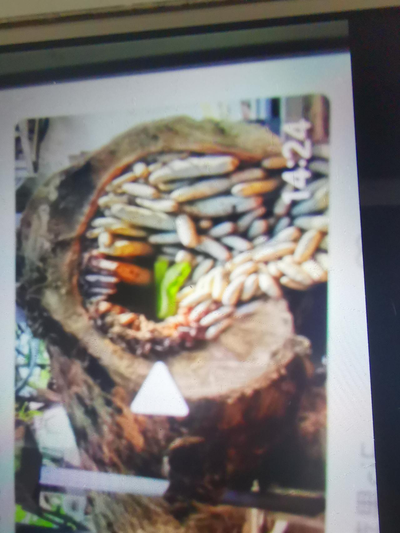 锯倒一根大树 看到树洞中全是这种卵虫,越看越麻嘎嘎,连背心汗毛都竖起来了 这是一种什么母大虫 有几人见过 请见过的说说,这是什么壳壳虫,能不能象蚂蚱一样,拿油炸香了可以当下酒菜