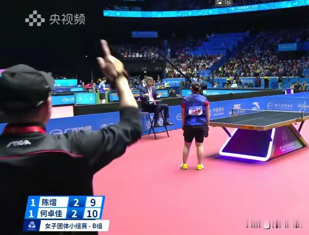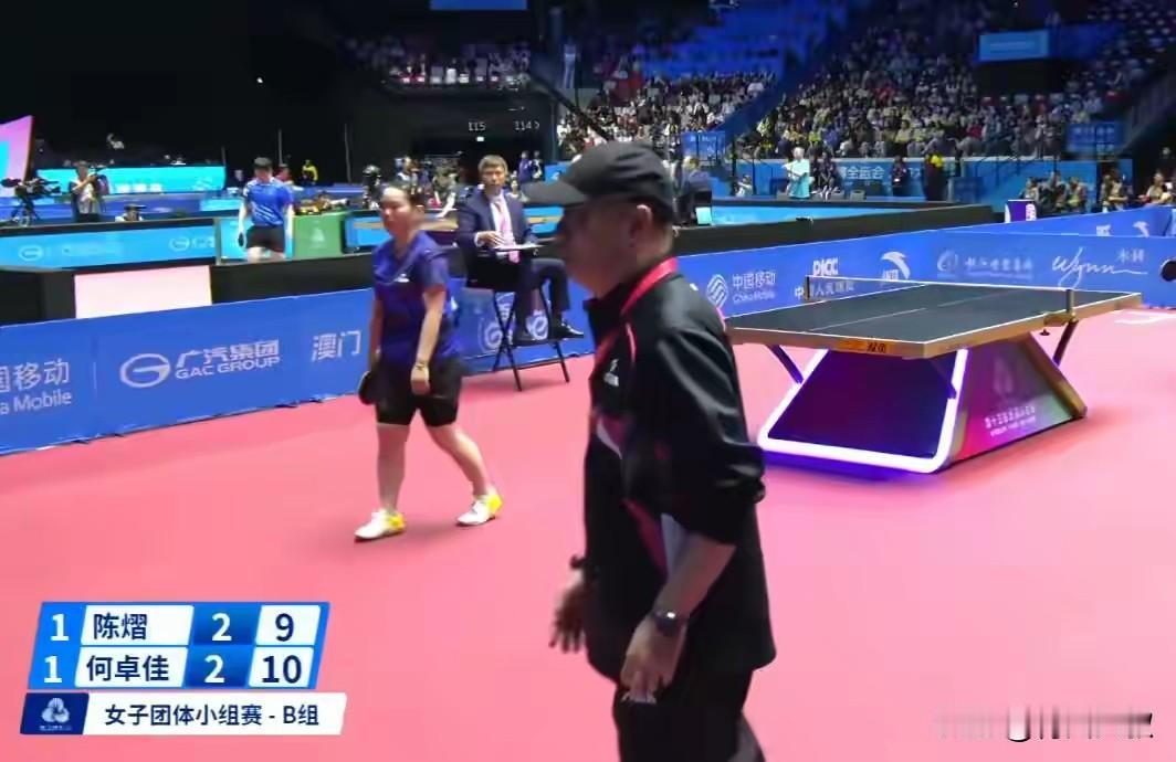 何卓佳被扣分不可怕?但是教练杨广第跑到赛场问裁判,没有鹰眼,怎么直接罚分? 我当时就懵了, 教练都盯着赛场, 难道他还不知道回抛扣分? 还跑到赛场问裁判? 有人说: 第一次只需要警告! 其实何卓佳前面已经被警告, 第四局8:4时还被扣了一分。 第五局局点这是第二次扣分! 何卓佳失控可以理解, 但是杨广第问出: 没有鹰眼为何直接扣分? 我是觉得有些不可思议!