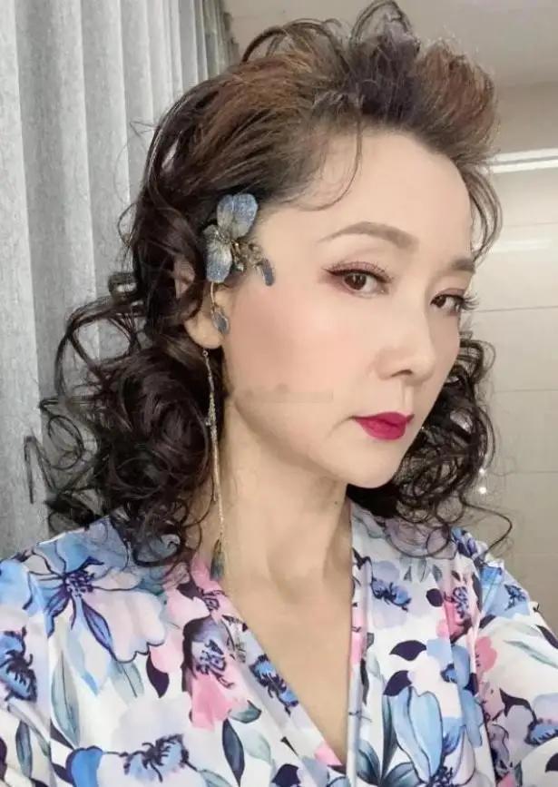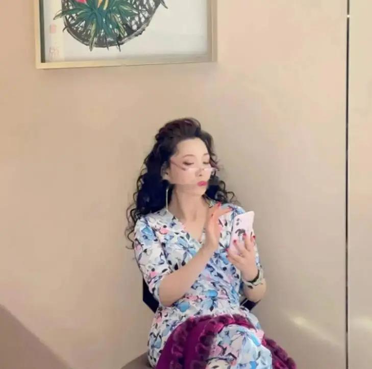 62岁何赛飞新烫了羊毛卷年轻25岁,穿印花连衣裙,美得像换了个人