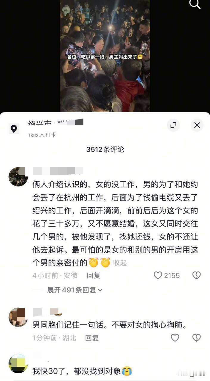 近日,“新瓜保熟”之捞女事件引发关注 上虞有一男主 为了一名女子放弃了杭州的工作 又因违规偷电缆 又丢掉了在绍兴的工作 转而开起了滴滴 前前后后 他为女主花费了三十多万 然而,女主却不愿与他结婚 与此同时在相处期间 和几个男子交往 事情被男主发现后 他想通过起诉让女主还钱 可女子却不依不饶 后来,又有消息爆出女主和其他男子出去约会 连房费都是 刷男主的亲密付支付的 所以问问大家 爱情的尽头到底是什么呢?