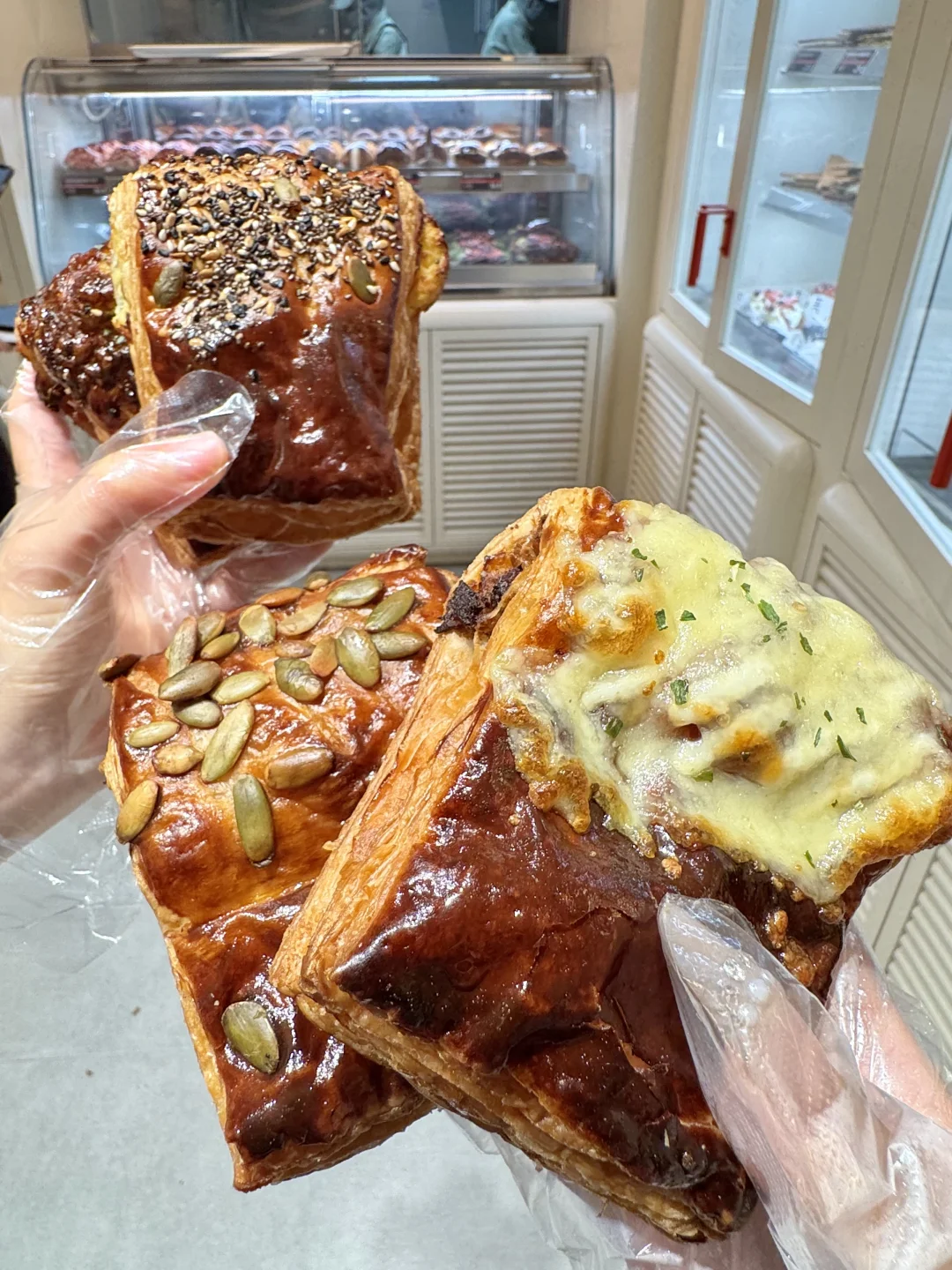 黑胡椒香肠芝士派、心动芝士培根派、心动黑胡椒香肠派、心动金枕榴莲派…又又又出新品啦!好吃S了[色色R][色色R] 每次路过都忍不住进去!!好看又好吃!!怪不得一直都排队!!