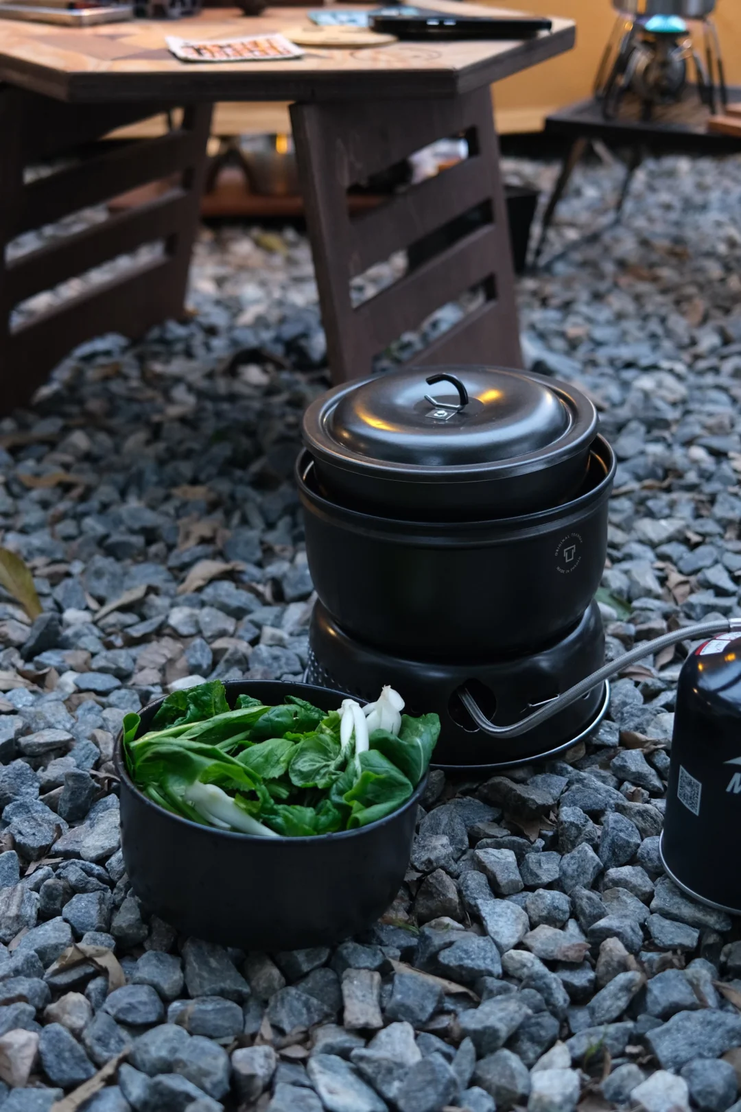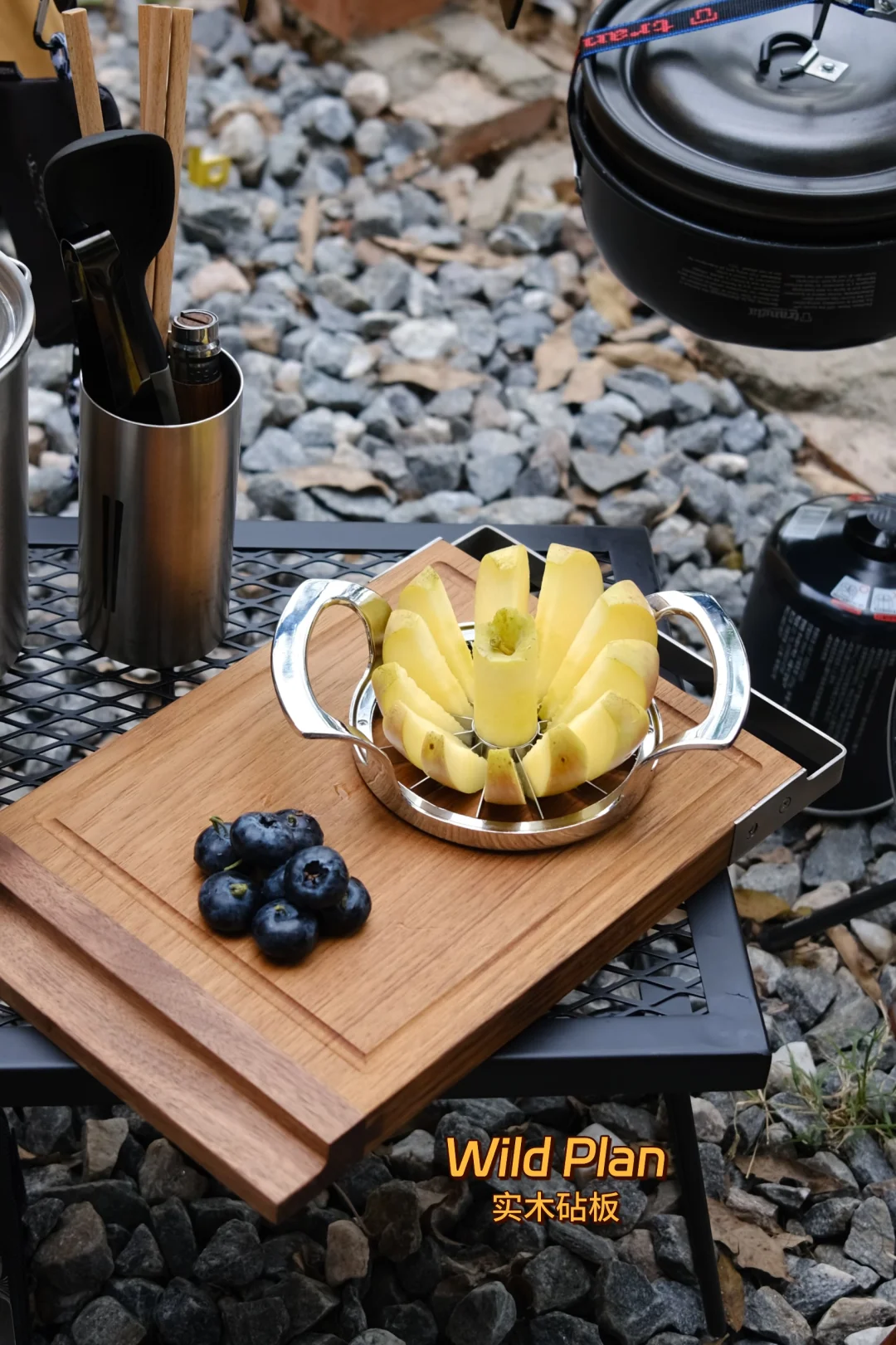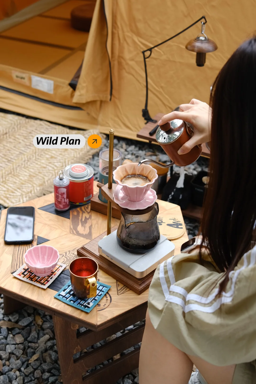 终于淘到心怡已久的人八月六角桌,人八月与春帐这对cp组合自带复古标签,一直很期待他俩搭配的画面感,这次终于成功打卡✅ 一般我的露营搭配是先确定好三大件:帐篷,天幕,桌椅,然后就是氛围感小物,这次搭配了一些plan 的实木小物,有砧板,咖啡架,灯罩 最后再是置物和收纳方面,这次用的桌边置物架是梁总手打的轻量化钉架,钢钉打入土里带来更好的稳定性,搭配自己打磨涂油的胡桃木层架,颜值功能都在线,这套置物架最大的特点是可以根据不同需求定制不同长度宽度的木板