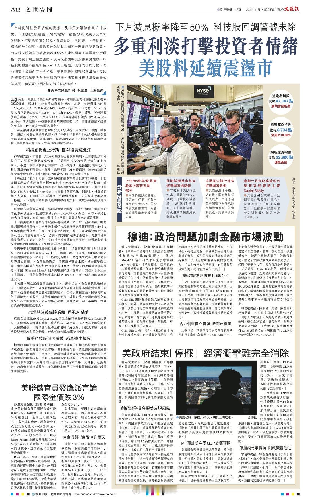 【美政府結束「停擺」 經濟衝擊難完全消除】香港文匯報訊(記者 倪巍晨 上海報道)在內地經濟學家宋清輝看來,創紀錄的政府「停擺」,進一步凸顯美國經濟衰退風險。受政府「停擺」影響,非農、通脹等數據延遲或暫停發布,數據缺失使美聯儲失去對經濟形勢判斷的基準,增加了政策決策的難度與不確定性。他續稱,美國的國際聲譽同樣受損,國際社會對美國政府的穩定性、財政治理能力產生憂慮,「政府『停擺』雖不會引發系統性衰退,但暴露了美政府財政治理的結構性失靈。」「今季美國GDP增速放緩風險雖有所紓解,但『停擺』帶來的負面衝擊將進一步顯現。」宋清輝分析,此次創紀錄「停擺」對美國經濟的影響線性累加,政府服務中斷、消費信心受損、投資延後等,或對四季度美國經濟構成0.1至0.3個百分點的拖累。此外,政府重啟後,後續數據的集中發布,可能顯著放大市場短期波動。 宋清輝提醒,特朗普簽署的「法案」屬於臨時性,由於美國保守派與溫和派之間的鬥爭仍將繼續,未來美國政府仍有再次「停擺」的風險。他說:「明年是美國財政預算博弈高峰期,政治層面的博弈風險更高,『停擺』將成為美國政治鬥爭的籌碼,並削弱其財政政策的靈活性。」