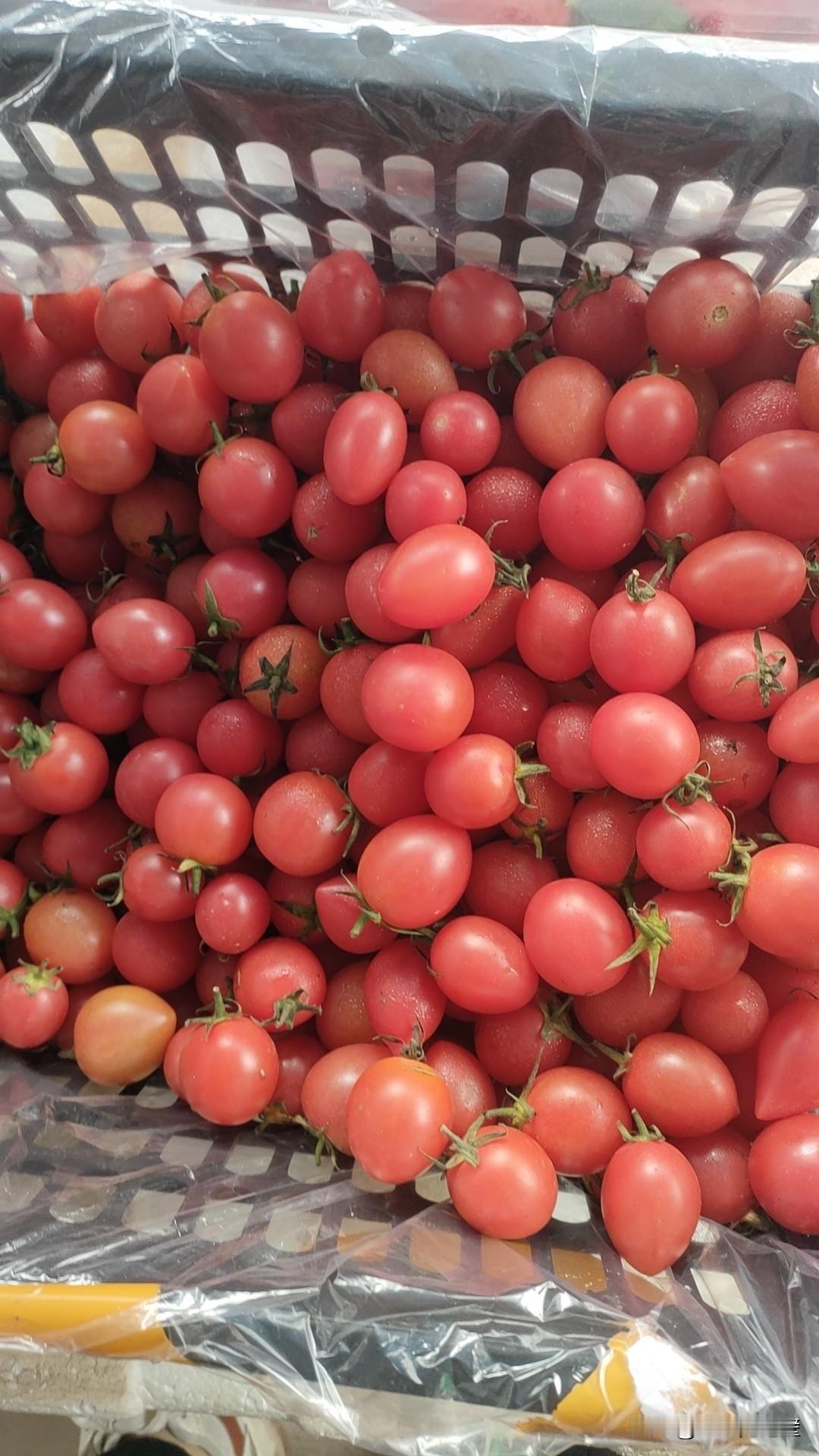 这筐千禧小番茄也太诱人了!颗颗圆滚滚裹着水珠,红得透亮还带着鲜绿的蒂,一看就甜得抿嘴。 这玩意儿可太百搭了——洗一把抓着吃,酸甜爆汁;丢沙拉里脆爽解腻,连不爱吃菜的小孩都能炫半盘。 海南产的尤其甜,夏天冰一冰,咬开那股清爽劲儿,直接把燥热都冲没了! 你们平时都咋吃这小番茄?