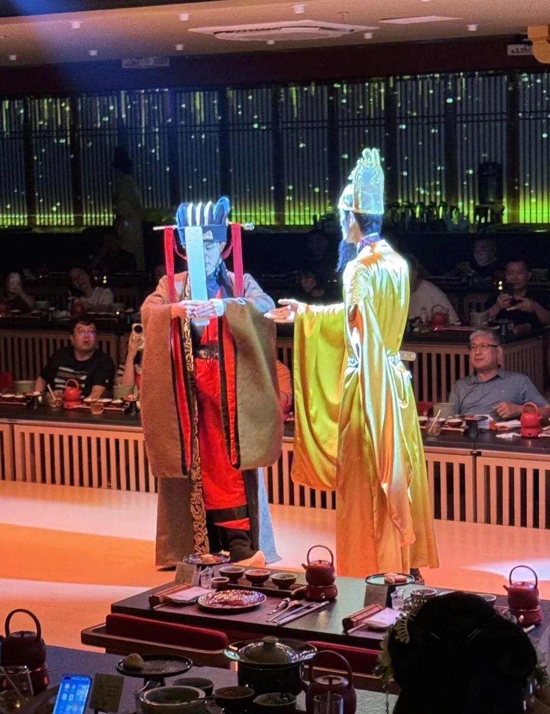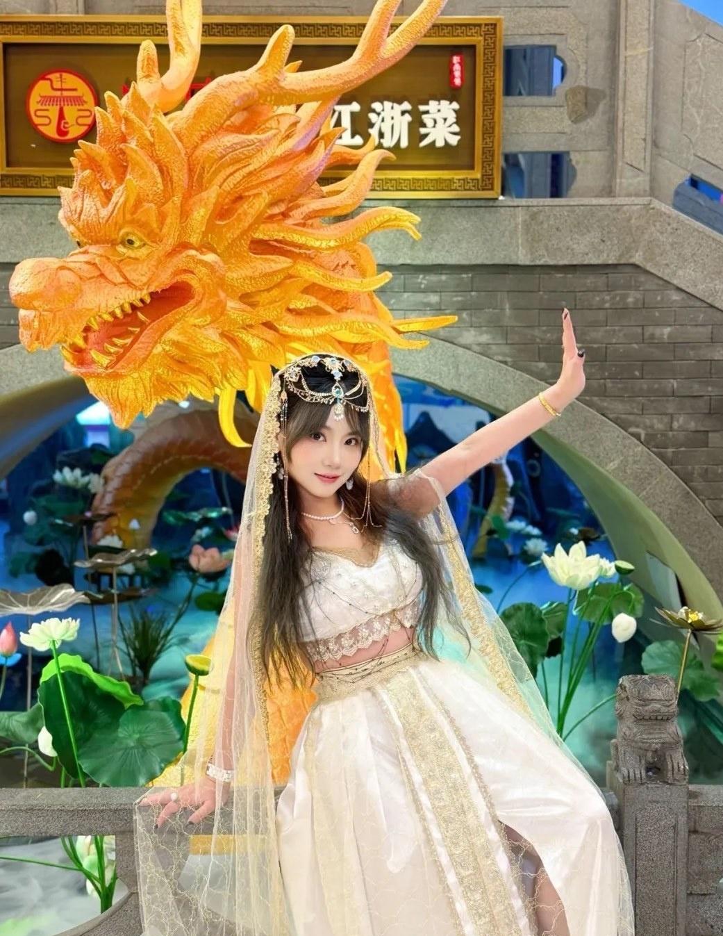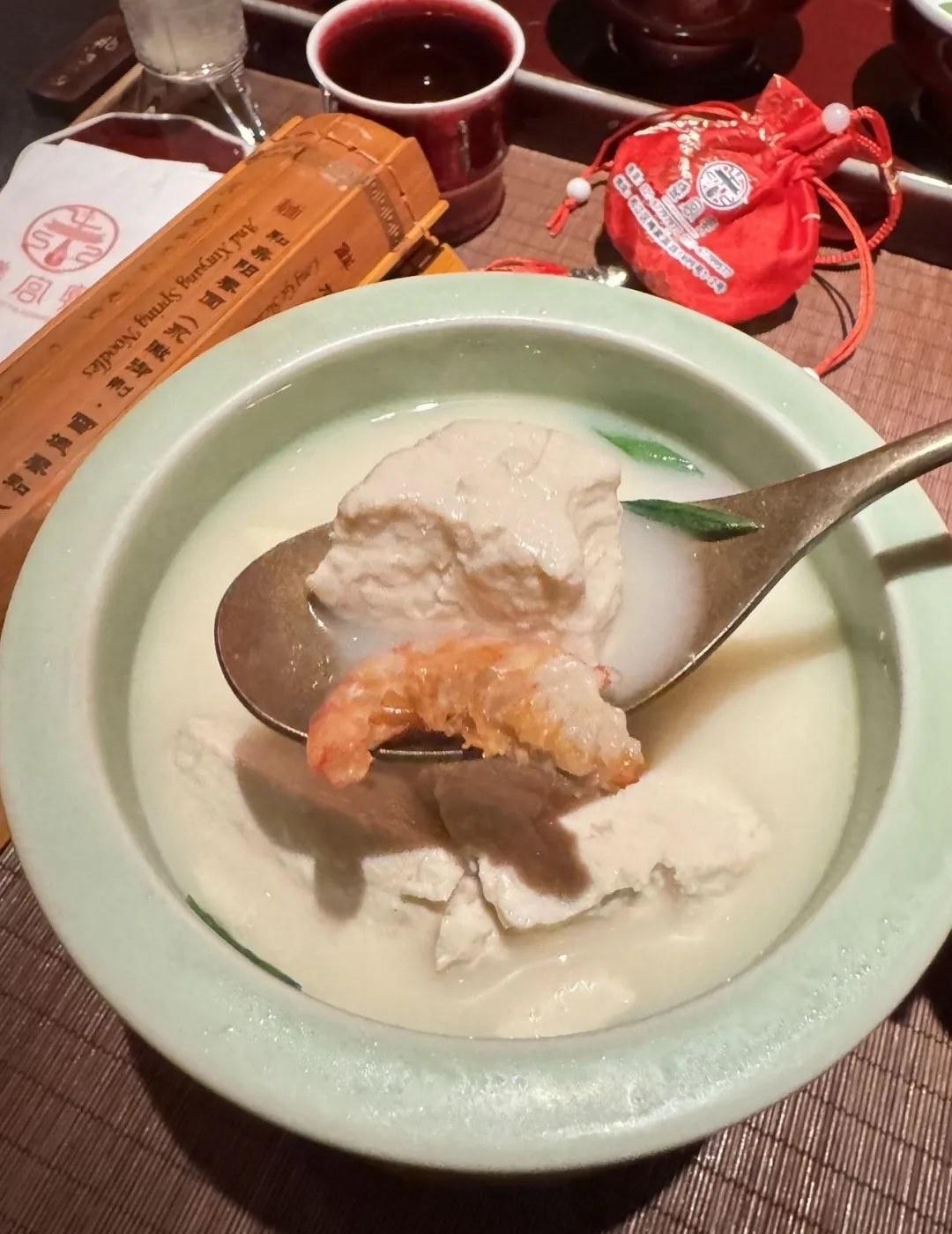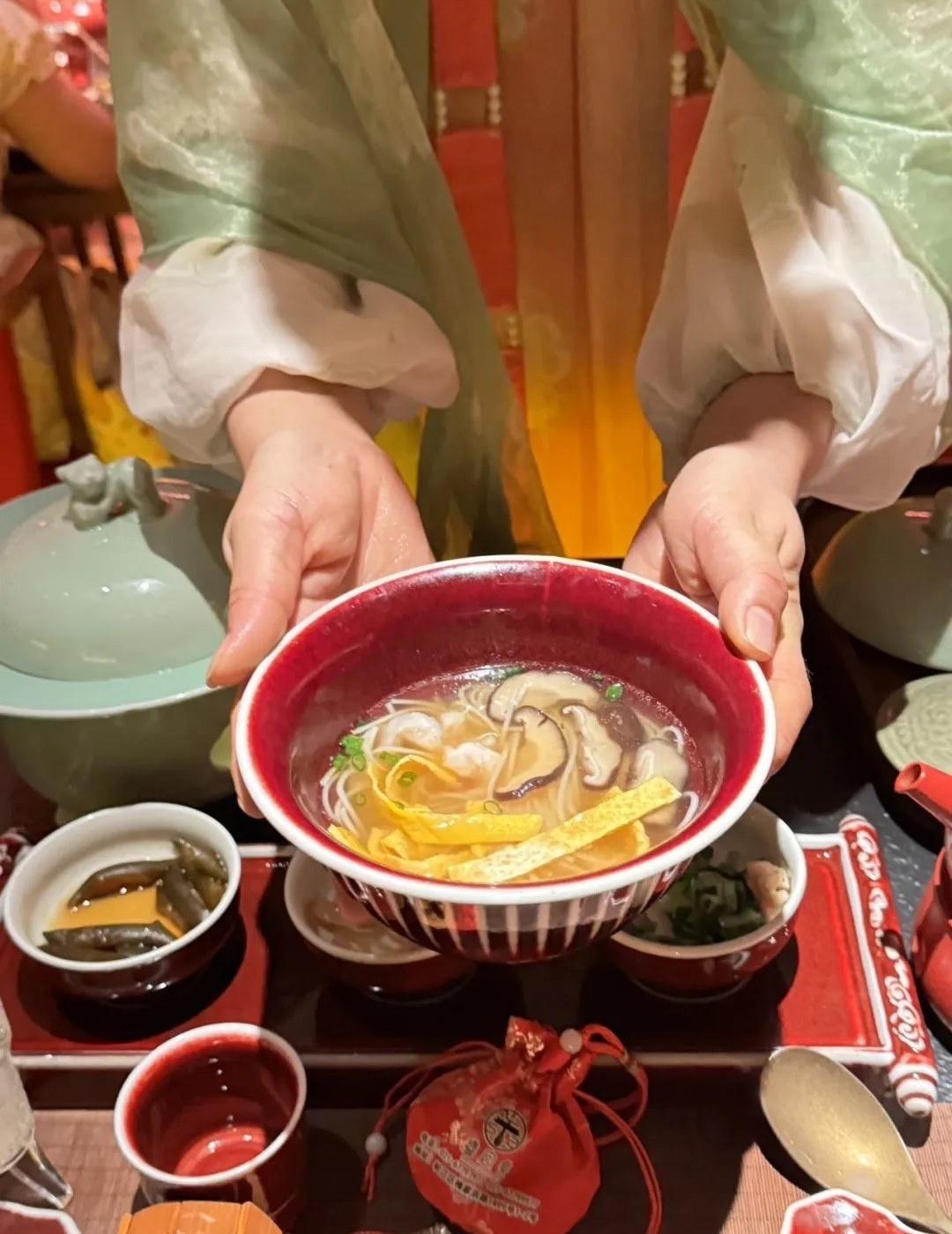 谁懂啊!在松江逛街被朋友拉进一家店,推开门直接懵了——满店的唐风装饰,连店员都穿得像从仕女图里走出来的,这哪是吃饭,明明是闯进了盛唐宫廷宴啊!✨ 进店第一要务必须是选汉服! 不是那种敷衍的款式,架子上挂满了精致的襦裙、披风,我一眼挑中了西域风的,花纹和配饰都超细节。化妆师小姐姐手也太巧了吧,花钿一贴、头饰一戴,对着镜子直接“哇塞”出声,随便找个角落拍拍也很出片哦!📸 宫廷美点三福 里面的贵妃虾滑荔枝真的绝了——外壳是清甜的荔枝味,咬开瞬间爆汁,虾滑的鲜裹着果香,这一口下去,终于懂了“一骑红尘妃子笑”的快乐,根本停不下来! 龙舌牛肉粒 直接戳中本帮胃!甜口的做法特别地道,肉质嫩到轻轻一嚼就化,甜而不腻,连吃三颗都没够,配米饭能炫半碗! 龙舸蒸黄鱼 端上来的时候还冒着热气,鱼肉剥下来是完整的蒜瓣状,入口超嫩滑,鲜味儿直往喉咙里窜,吃的时候连汤汁都想舔干净,鲜到眉毛都要飘走了~ [心]最绝的是边吃边能看表演!七幕剧轮番上,帅哥美女载歌载舞,有的讲丝路故事,有的演宫廷趣事,眼睛和嘴巴根本忙不过来,这顿饭吃得比看秀还过瘾🎭 现在已经开始盼着生日了——必须再来这儿过!想体验“穿越”的宝子听我的,这种神仙地方,真的会N刷! 🏡店名:盛宫宴(上海首店)