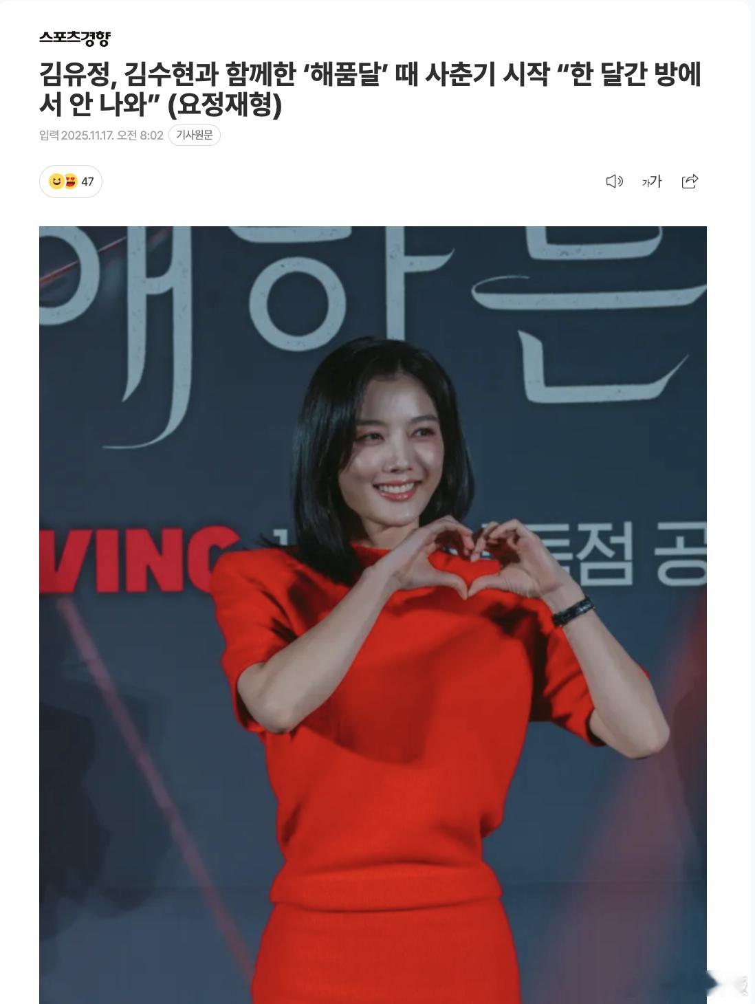 近日,韩国演员金裕贞在访谈中,分享了青春期的烦恼与成长经历。金裕贞透露,自己的青春期从出演 MBC 电视剧《拥抱太阳的月亮》期间正式开启。这部剧当年创下 40%~50% 的高收视率,她以 “国民妹妹” 的形象被观众熟知,但高强度的拍摄与公众关注,让青春期的她倍感压力。谈及这段经历,金裕贞坦言 16 岁时是青春期最严重的阶段:“那时候总感觉不知道自己是谁,正处于寻找自我的时期。” 她还自曝曾有过极端状态:“曾经一个月待在房间里不出门,也有过关掉所有灯独自躺着的时候。”她回忆,当时一边上学一边往返拍摄现场,社交环境也不如现在活跃,没能及时释放情绪。而《拥抱太阳的月亮》是她当年恳切争取来的作品,“剧本大纲里的内容太吸引人,所以不管再难都想出演”。