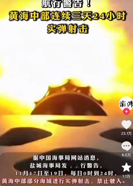 最狠的来了,大炮往东发射,日敢有事参战,就要被无数弹药炸碎! 2025年的东亚局势硬是被日本搅得暗流涌动,高市早苗靠着82%的支持率在国内站稳脚跟后,立马就忘了分寸,公然鼓吹出兵台海,还暗示要行使所谓集体自卫权,把矛头直接对准了我们的红线。 这边话音刚落,日本自卫队就跟着摆起了大阵仗,一场代号“令和7年度统合演习”的军事行动高调展开,5.8万人的兵力加上300架各类飞机,连“出云”级轻型航母都拉出来了,搭配着F-35B舰载机搞协同演练,陆上自卫队的“鱼鹰”机还专门练起了海峡方向的快速投送,这针对性简直直白得不能再直白,明摆着是想在台海问题上插一脚。 可他们怕是忘了,这年头讲究的是来而不往非礼也,你敢亮刀,咱们就敢直接亮剑。 没给任何缓冲,也没有多余的演练说辞,中国海事局直接发布航行警告,2025年11月17日到19日,每天24小时不间断,在黄海中部划定专属海域进行实弹射击,明确禁止任何船只驶入。 这波操作没有半点虚头巴脑,就是要让日本看清楚,挑战红线从来都没有好果子吃,我们的回应既直接又硬核,没有留给对方任何模糊解读的空间。 日本自卫队那5.8万人的演习看着声势浩大,300架飞机也摆足了场面,但真要比起实打实的威慑力,跟咱们这连续三天的实弹射击比起来,根本不是一个量级。高市早苗靠着国内的高支持率就敢肆意挑衅,说白了就是低估了我们捍卫核心利益的决心和实力。 他们以为靠着军事演习就能施压,以为有外部势力撑腰就能为所欲为,却不知道现在的我们早就不是任人拿捏的样子,手里的家伙事儿既够硬,也敢用。 这次黄海实弹射击,没有提前预告,没有层层铺垫,就是最直接的态度表达:任何国家敢在我们的红线问题上动歪心思,敢贸然参战搅局,等待他们的只会是铺天盖地的弹药回应。日本要是真敢脑子一热跨过底线,那些演习中看似唬人的装备,在真正的实弹打击面前根本不堪一击。我们的实弹射击不是恐吓,而是提前划下的底线,是给所有心存侥幸者的警告。 其实道理再简单不过,和平从来不是靠妥协换来的,而是靠足够的实力和坚定的态度守护的。日本一边放任右翼思潮蔓延,一边搞大规模军事演习挑衅,这种危险的玩法迟早会引火烧身。我们连续三天24小时的实弹射击,就是要打破他们的幻想,让他们明白,红线不可碰,参战必遭锤。 真要是到了那一步,无数弹药可不是摆着看的,日本就算有再多的兵力和飞机,也扛不住这种实打实的打击。这年头,谁都别想着靠挑衅占便宜,真要撕破脸,我们有的是能力让挑衅者付出应有的代价。