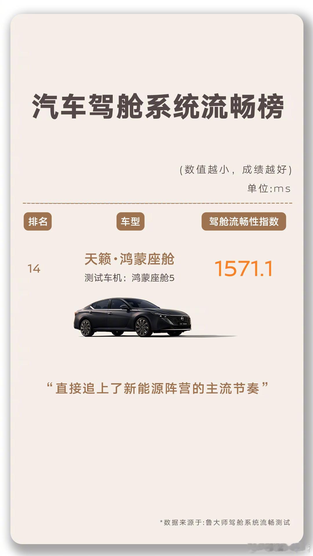 以前有新电脑会用鲁大师跑分,分高不一定好但分不高基本就是不好现在用在汽车智能座舱也是杠杠的,天籁鸿蒙座舱这回扬眉吐气了