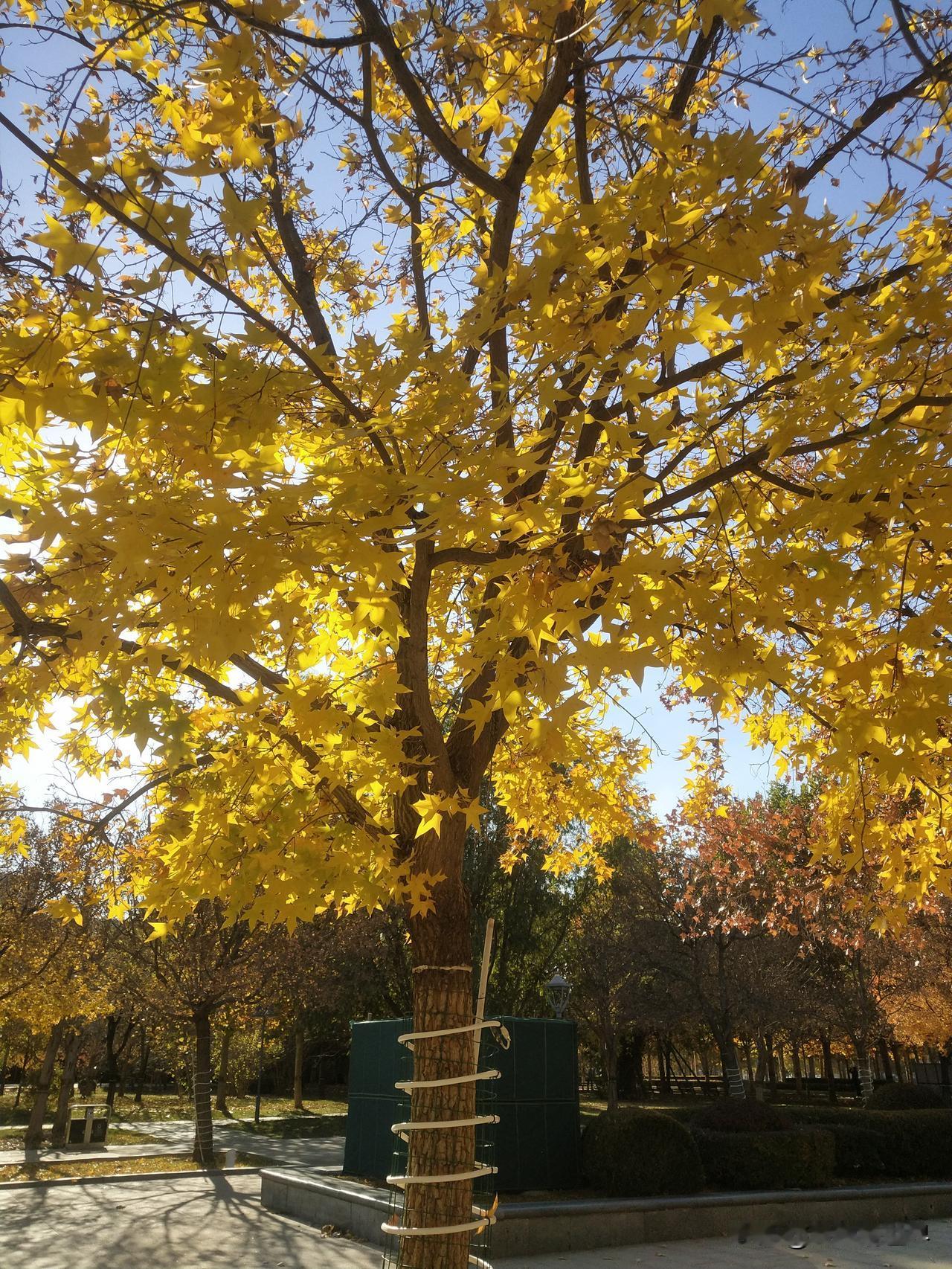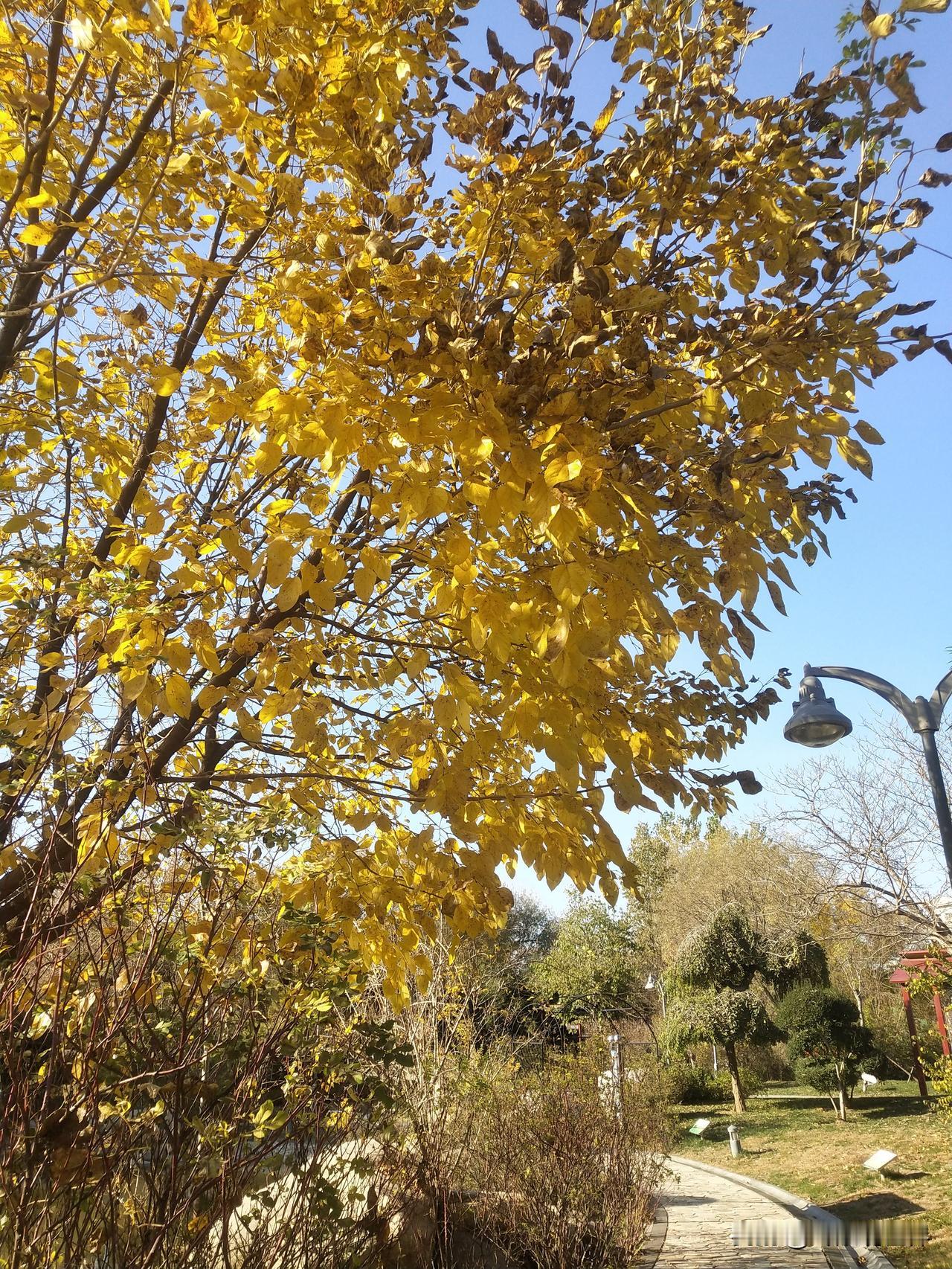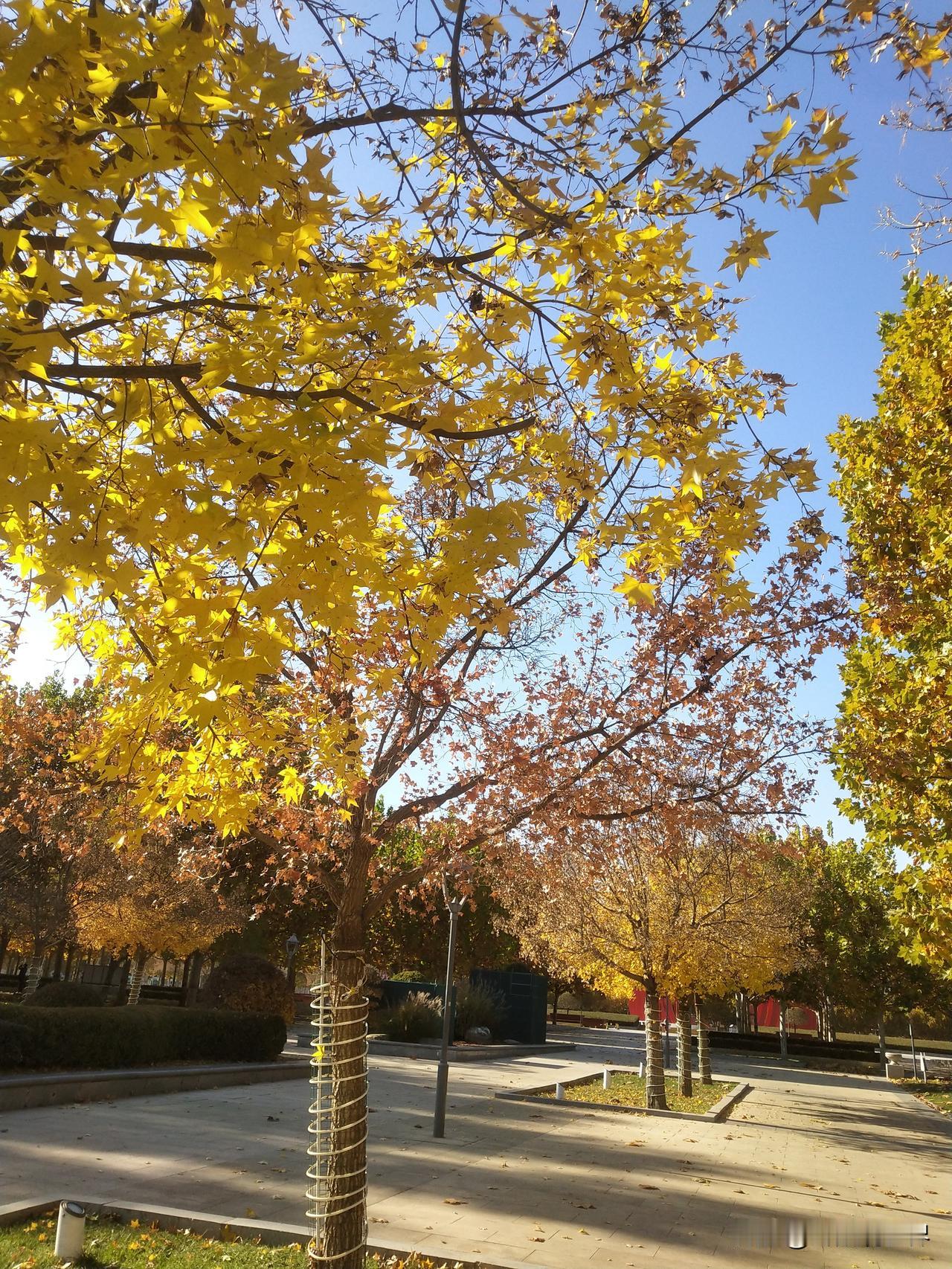 秋日暖阳洒满树梢,落叶铺就浪漫小径。