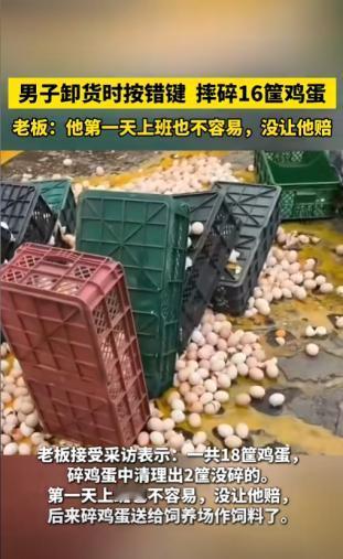 “太有人情味了!”11月8日,山东威海,一男子入职第一天,搬运鸡蛋时按错按钮,导致货车尾门突然下降,18筐鸡蛋顺着尾板滑落到地上摔碎,一片狼藉!该名员工第一时间联系老板想要提出赔偿,然而,老板却表示大家上班都不容易,坚决不让他承担分文。网友:这老板有格局,想不发财都难! 想必大家第一天上班时,都会有些紧张。毕竟业务还不熟练,难免担心自己一不小心捅出什么大篓子,造成难以挽回的损失。 当天下午,宫女士超市外,几车货物陆续抵达,一位员工站在货车尾板旁,手里拿着遥控器一按,下一秒,货车上的18筐鸡蛋“哐当”一声,噼里啪啦都砸在地上!蛋液四溅,空气弥漫着一股腥味。 原来这名员工今天是第一天入职,由于对设备操作不熟练,将原本下降的按钮错按成了倾斜,18筐鸡蛋顺着倾斜的尾板都滑落了下去,最后只能挑出两筐完整的鸡蛋,损失将近2000元。 事后该员工多次找到宫女士想要赔偿,但宫女士始终婉拒,她表示员工第一天上班本就不易,操作不熟也情有可原,不忍让他承担这笔不小的金额,随后,她安排员工去其他岗位继续工作,并让人把破碎的鸡蛋整理出来,送给附近养殖场作为饲料,尽可能减少浪费。 网友看后表示,职场不仅是谋生的地方,更是人与人之间相互理解、彼此成就的领域,员工有担当,老板有温度,这才是理想的职场关系。 这样的老板谁能不爱呢! 信息来源:《男子卸货时不小心按错键,摔碎16筐鸡蛋。老板:他第一天上班也不容易,没让他赔》看余杭
