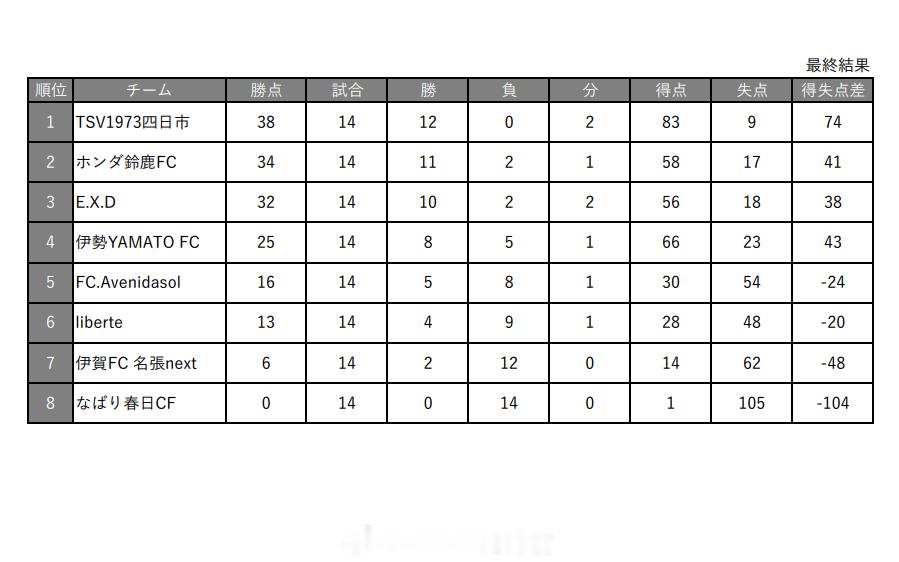 【李俊达日本夺冠】2025年日本三重县甲级联赛(第7级别)落幕,TSV1973四日市以12胜2平0负、进83球丢9球的不败战绩夺得联赛冠军。05年后卫李俊达作为球队主力后卫,出场13次、首发11次,打进1球;05年边锋沈鸿翔出场4次、首发2次,打进1球。