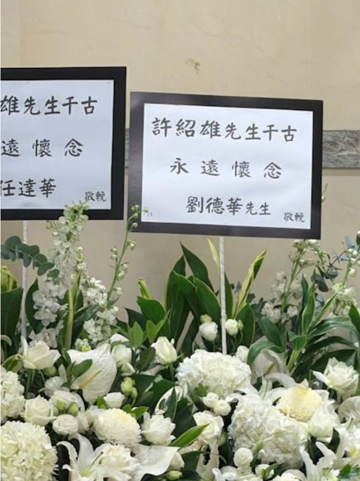 许绍雄家人今日设置灵堂,多位艺人送花篮吊唁