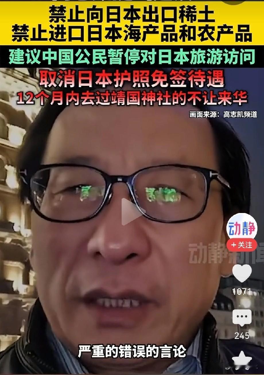 高志凯提出建议: 禁止向日本出口稀土 禁止进口日本海产品和农产品 禁止向日本出口农产品 建议中国公民暂停对日本旅游访问 取消日本护照免签待遇 12个月内去过靖国神社的不让来华