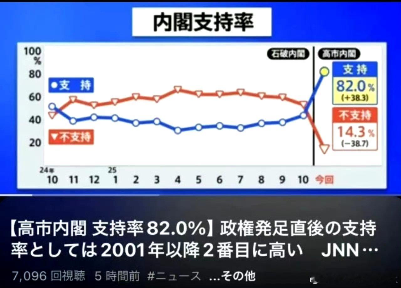 82%支持率创20年新高:高市内阁的“开局神话”与日本社会的右倾转向当JNN民调数据在11月17日的屏幕上弹出时,日本政坛几乎被一个数字震撼——高市早苗内阁支持率飙升至82%,不支持率骤降至14.3%,较前任石破茂内阁的最后一次民调,支持率暴涨38.3个百分点,创下2001年小泉纯一郎内阁(88%)以来的历史第二高纪录。从石破到高市:支持率的“悬崖式反转”图表清晰勾勒出石破内阁后期的民意疲软:支持率长期徘徊在40%上下,不支持率接近60%,经济政策无力、外交姿态保守的批评声浪持续发酵。而高市10月21日就任首相后,民意曲线几乎以“直角”向上跃迁——短短三周内,支持率从石破时期的43.7%跃升至82%,不支持率从53%暴跌至14.3%,这种幅度的民意反转,在日本战后政治史上堪称罕见。JNN的民调注释直接点明:这是“2001年以来的第二高支持率”。作为日本首位女性首相,高市早苗的“非世袭政客”身份、密集的外交曝光(东盟峰会、特朗普访日、APEC会议),以及“积极财政+强硬安保”的政策组合,精准击中了选民的情绪痛点——尤其是在石破内阁未能缓解通胀(日本三季度CPI仍达3.2%)、经济陷入负增长(三季度GDP年下降1.8%)的背景下,民众对“行动力强的领导人”的渴望被彻底点燃。82%背后:右倾民意的“集体爆发”这组数据的危险之处,在于其与高市的激进政策形成了“共振”。民调公布前,高市已在国会公开宣称“台湾有事构成日本行使集体自卫权的存亡危机事态”,并推动防卫预算提前两年增至GDP的2%——而JNN的调查显示,60.4%的受访者赞成其扩军方针,48.8%支持涉台强硬立场,这一比例较2020年上升了18个百分点。更值得警惕的是年轻群体的态度:18-29岁受访者中,88%支持高市内阁,其中91%的男性赞成“强化军事应对中国”。东京大学同期调查显示,52%的大学生认为“日本应扩军反制中国”,较2018年的31%大幅跃升。这种倾向与日本社会的“对华负面情绪”深度绑定——NPO组织数据显示,83%的日本人对中国持“无好感”态度,较2020年上升12个百分点,而高市正是将国内经济疲软、日元贬值等民生问题,全部包装成“中国威胁”的外部矛盾。日本主流媒体的集体造势进一步放大了这种情绪:《读卖新闻》称高市的涉台言论是“新时代领导魄力”,《产经新闻》将扩军政策包装为“守护西南诸岛安全”,少数理性声音(如前首相鸠山由纪夫)甚至被贴上“卖国贼”标签。这种“激进当道、理性失语”的舆论场,让82%的支持率彻底偏离了“政策支持”的范畴,更像是右倾民意的“集体宣泄”。泡沫会破吗?高市的“执政隐忧”尽管支持率创下纪录,但高市的“神话”并非无懈可击。JNN民调同时显示,64.7%的受访者认为“未感受到高市解决政治腐败的意愿”,65%批评其“应对熊害问题迟缓”;更关键的是,自民党支持率仍停留在30%以下——这意味着民众信任的是高市个人,而非执政党的政策能力。历史经验早已证明,日本的“高支持率泡沫”往往脆弱:小泉纯一郎的88%支持率,在其推行邮政民营化改革后迅速滑落;安倍晋三的“蜜月期”也仅维持了10个月。而高市的政策本质是“用外部矛盾掩盖内部问题”——当扩军无法缓解通胀、强硬外交导致旅游消费股暴跌(如资生堂、伊势丹三越控股周内跌幅超10%)的现实冲击到民众生活时,这组“82%”的数字,或许会以比攀升更快的速度崩塌。