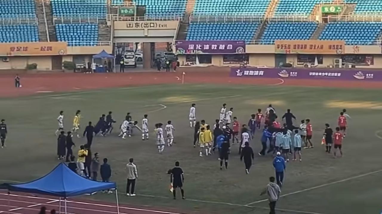 安徽青少年足球赛又出火爆场面,拳打脚踢,十几人的混战。 这些只是少年足球赛,这么有个性,这么有胆量,未来可期。 双方的场边工作人员也不甘示弱,加入到了战斗场面,特别有血性。 火爆的场面让裁判只能双方都罚下一人,以平息场面。 最终这场高中级别的比赛以芜湖以1:0战胜宿州队结束。