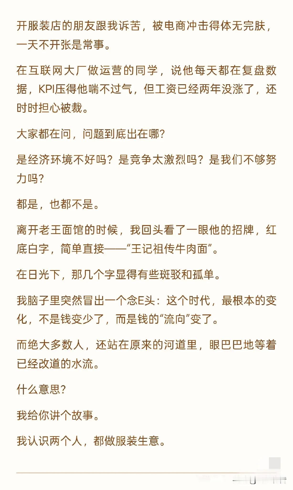 钱难挣的时代,问题出在哪? 现在,很多人感到钱越来越难挣了,想找工作但找不到稳定合适的工作,自己创业做生意但生意不景气,做自媒体创作图文视频但阅读单价越来越低。对普通人来说,钱是越来越难挣了。那么问题出在哪里?普通人应该如何在这个快速变化的世界里生存?以下这篇文章或许会帮助你解决这些困惑。