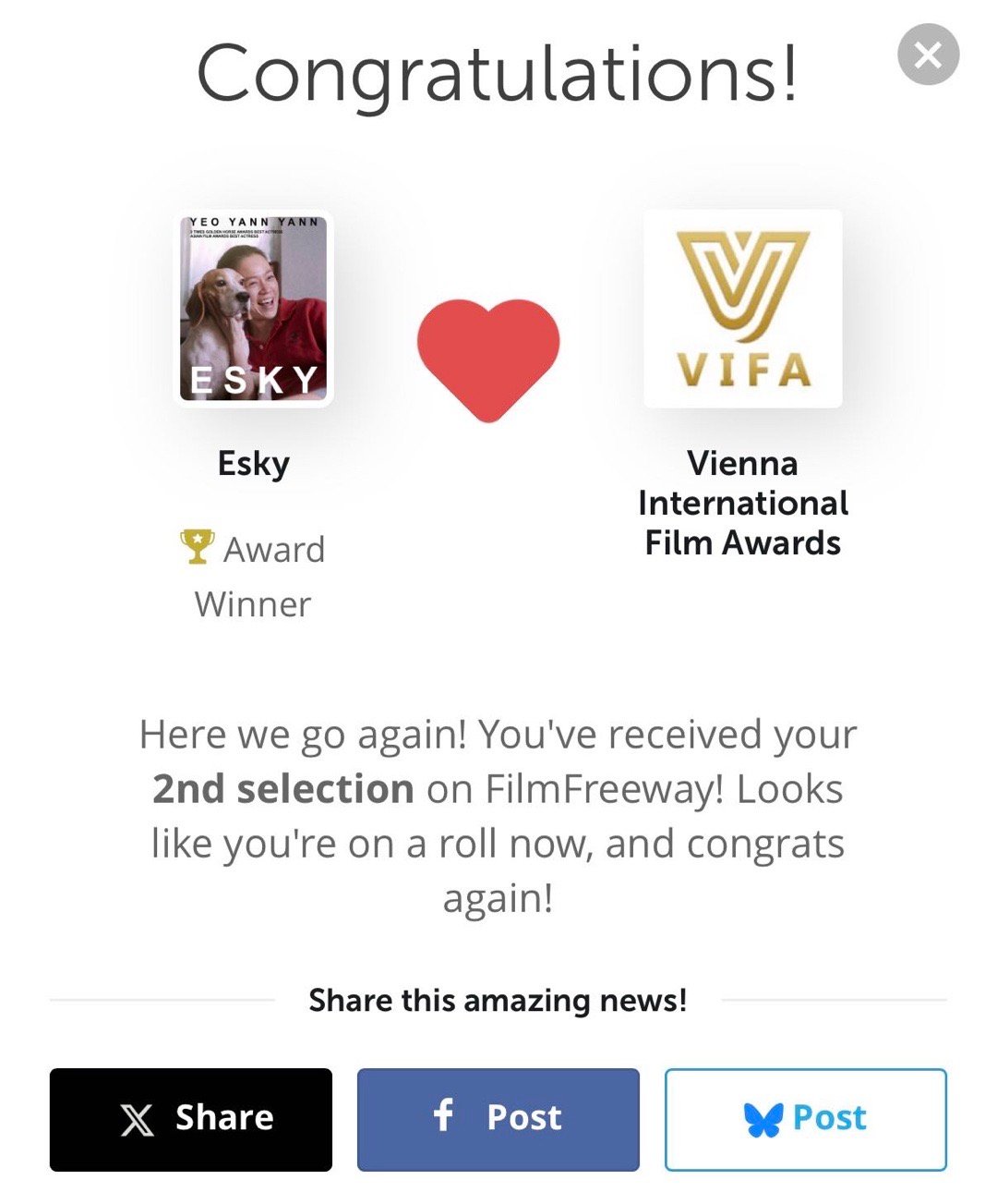 国际影坛再传佳音!王冠逸导演短片《ESKY》荣获维也纳国际电影奖最佳导演奖!这是他继好莱坞独立电影节后斩获的又一殊荣,展现了卓越的导演潜力,恭喜!