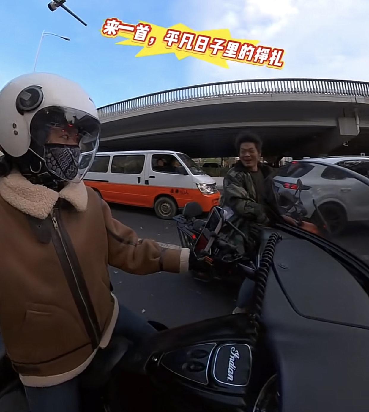 换作是你,会满足陌生人的要求吗 北京一立交桥底红绿灯路口,一名女骑手边等红灯边外放着音乐。此时一小伙子正好路过,听到女孩外放的音乐后很好奇凑近女孩旁边,一个劲的赞女孩车上的音响好。然后还提出了“非份之想”,要求女孩播放自己喜欢的“平凡日子挣扎”这首歌。 小伙子当时的举动有些突兀,女孩开始也有些抵触,毕竟是陌生人,而且衣着还挺邋遢!可女孩没有排斥,马上帮小伙搜歌,很友善满足了小伙的愿望,小伙然后很满足的骑车离开。 看到这一幕,说真的,女骑手的善意友爱给我整得泪眼朦胧的 能看得出小伙子应该是在城里干着最不体面的工作,生活不易还这么乐观向上,所以不能以貌取人,纯朴的人往往最真实善良。很多人混的不好就怨天怨地怨环境,其实,怎么好赖都是你自己说了算,这个世间美好的东西多的去了,善良+成功就应属于那些自强不息的人。